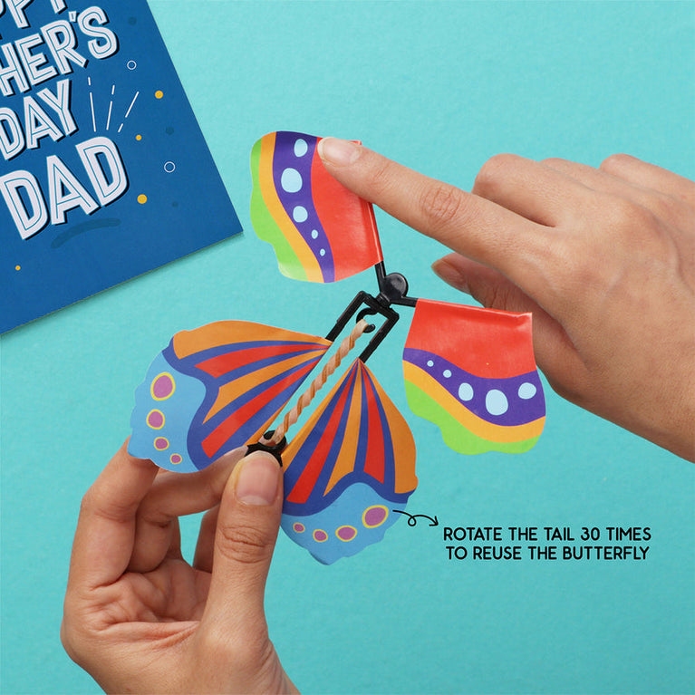 🦋 Butterfly Note:The card has to be opened with a mild jerk for best results. Sometimes, the butterfly tends to get tired during the shipment journey. If possible, we request you to open the card when you receive it and twist the butterfly’s tail the same way you rotate a key to recharge it. Once you’ve completed the motion 40-50 times, place it inside the card and close it.