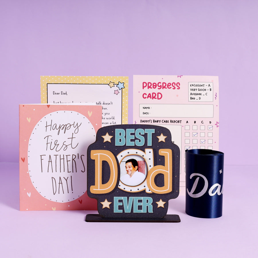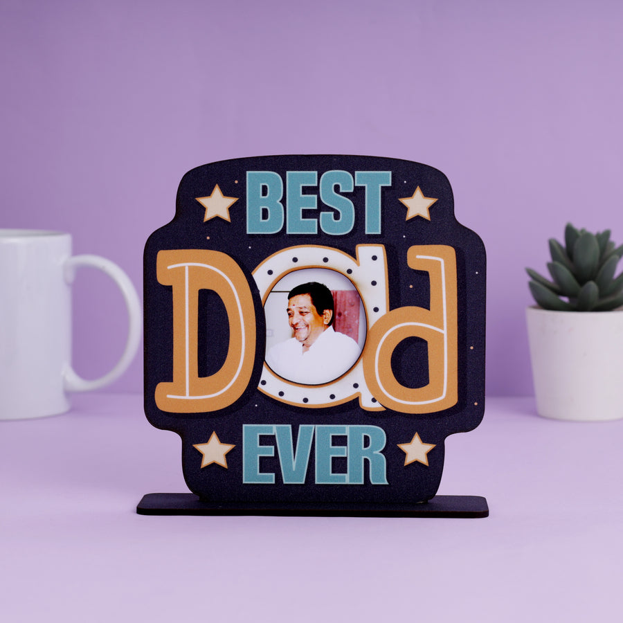 Best Dad Ever Table Top - An intricate work of art to adorn the new dad's bedroom/living room with. Made with lots of love and creativity, this gift tells the new dad everyday that he is the best dad ever! And, you know the best part? You can customise the table top with their favorite picture. Go ahead, and make their day.