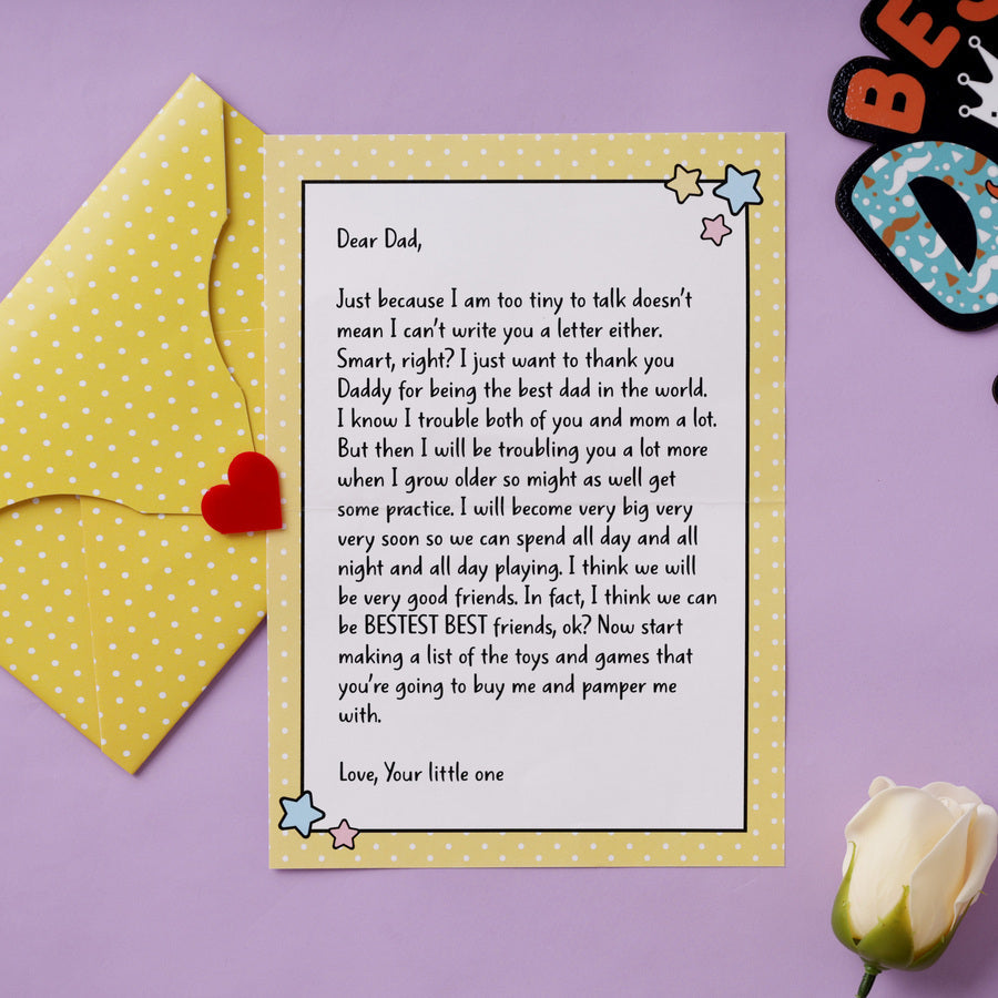 Letter for New Dad - Want to surprise a new dad who can’t stop being excited about the baby? Gift him an outrageously cute letter written by his little baby! This gift is adorable enough to make him melt like a slab of butter.