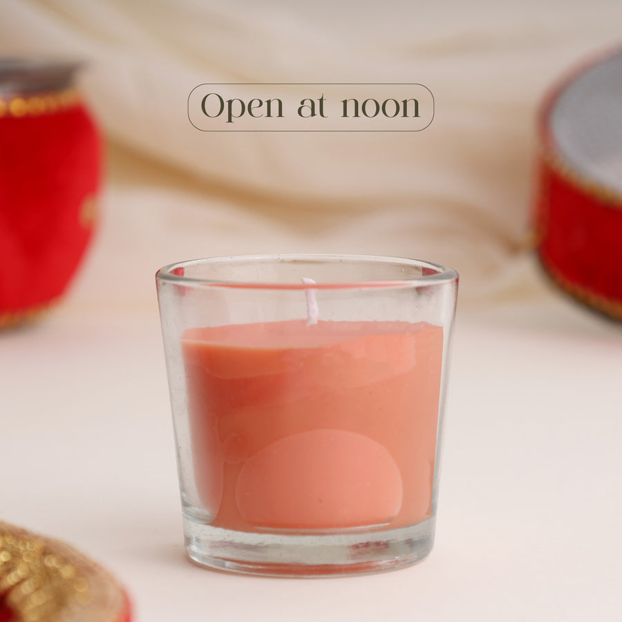 Peach Scented Candle - A fresh peachy fragrance to keep her relaxed and glowing through the day. Perfect for her first Karwa Chauth afternoon.