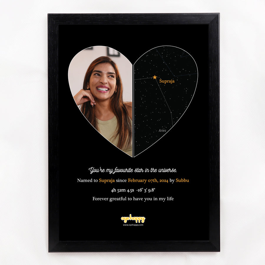 Make your loved one shine forever by naming a star after them—now with their picture beautifully framed!