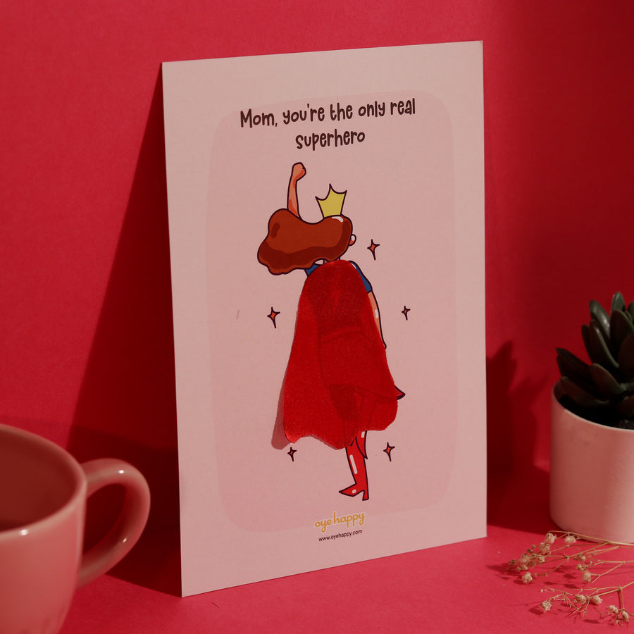Content on the Card : Card : Mom, you're the only real superhero.