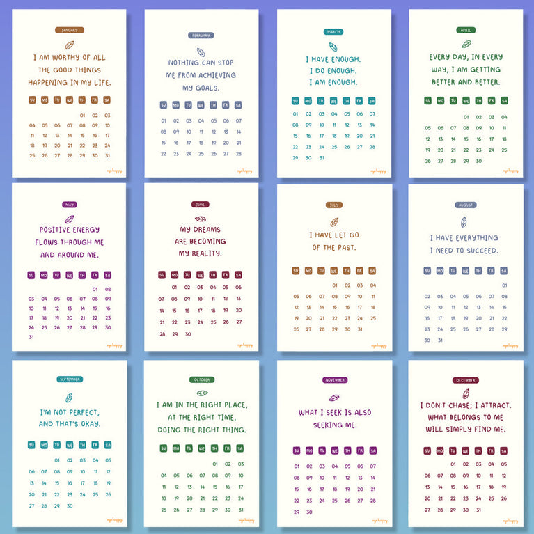 A happy little calendar that keeps your mood in the right place, no matter how the day goes. Every month it gives you a reminder to choose yourself, choose joy, and choose better days.Perfect for anyone who wants their desk to feel lighter and more positive. And a lovely new-year gift for someone who could use a bit more balance.Specifications-Size of the Easel : 4.5 x 3.5 inchesSize of Cards : Size : 3.4 x 5 inches