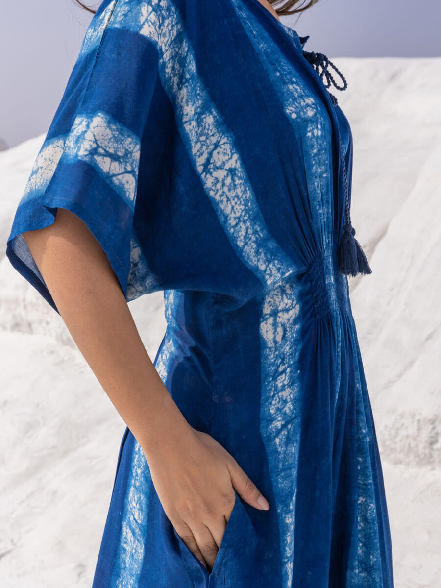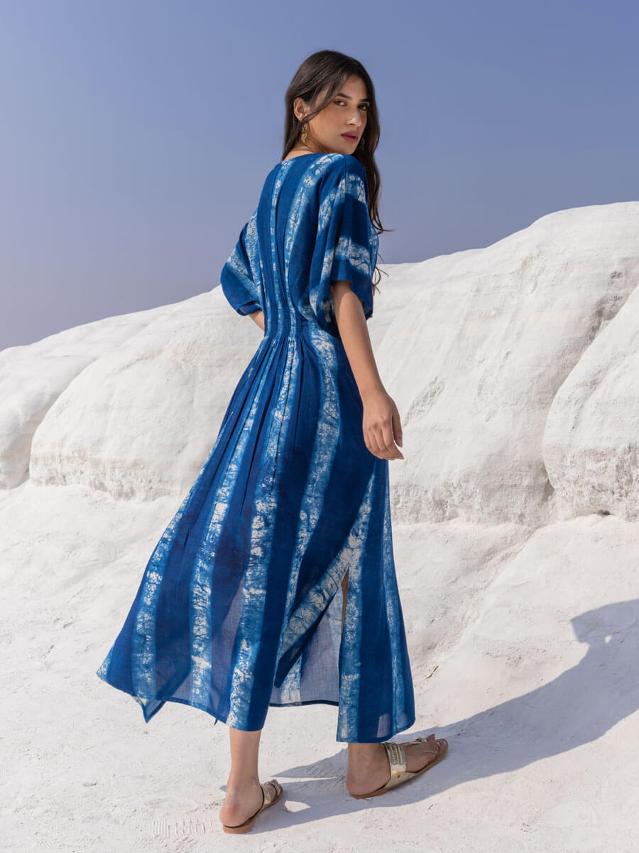 - Lovely comfort-fit indigo modal kaftan maxi dress