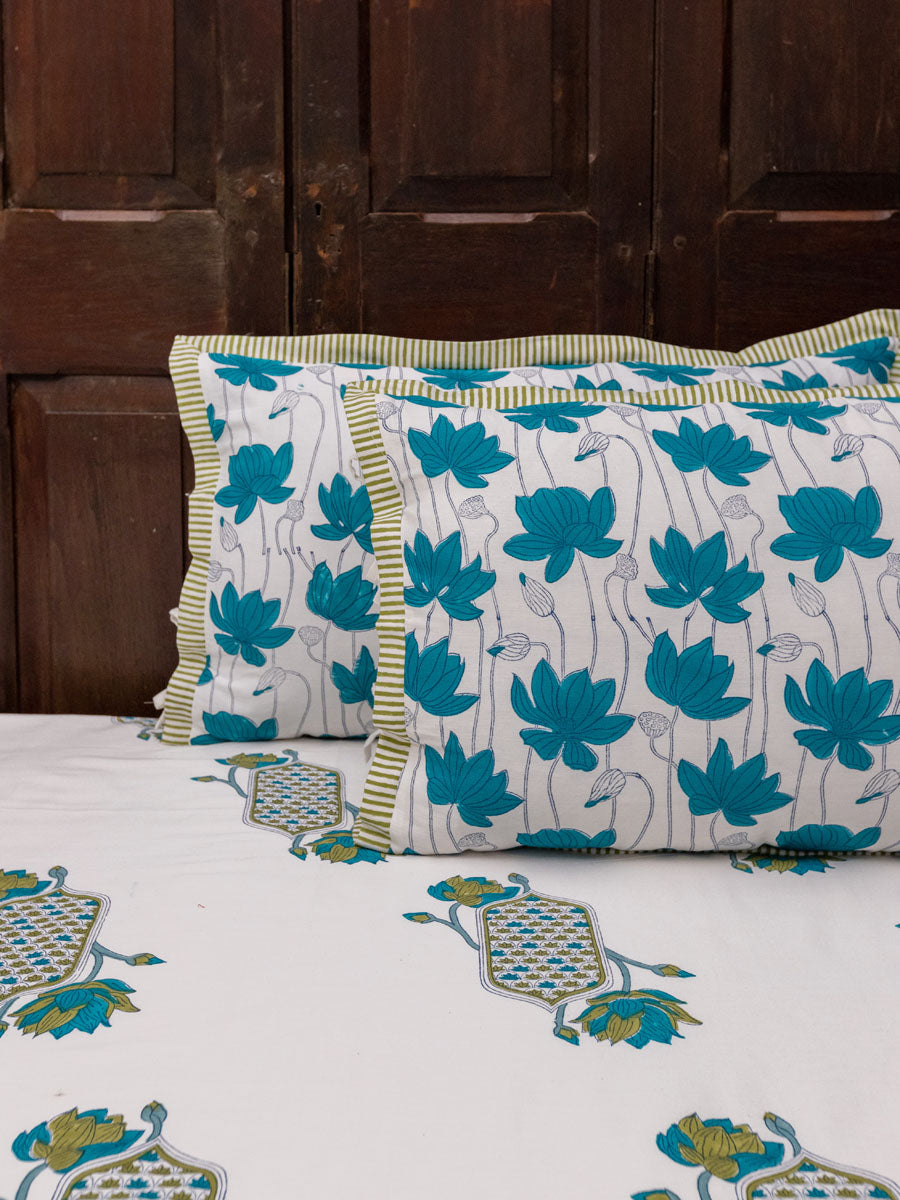Padma or the Lotus is a central figure in many art forms including Pichhwai. It's a flower with meaning, beauty, and great cultural significance. The origin of the Lotus in Hindu mythology goes as far back as 'Samudra Manthan'. Its first association is with Lakshmi who also emerges from 'Samudra', hence, is referred to as Padmaja or Padmavati. This hand block printed home textiles collection is inspired by the beautiful lotus and other nature inspired elements.