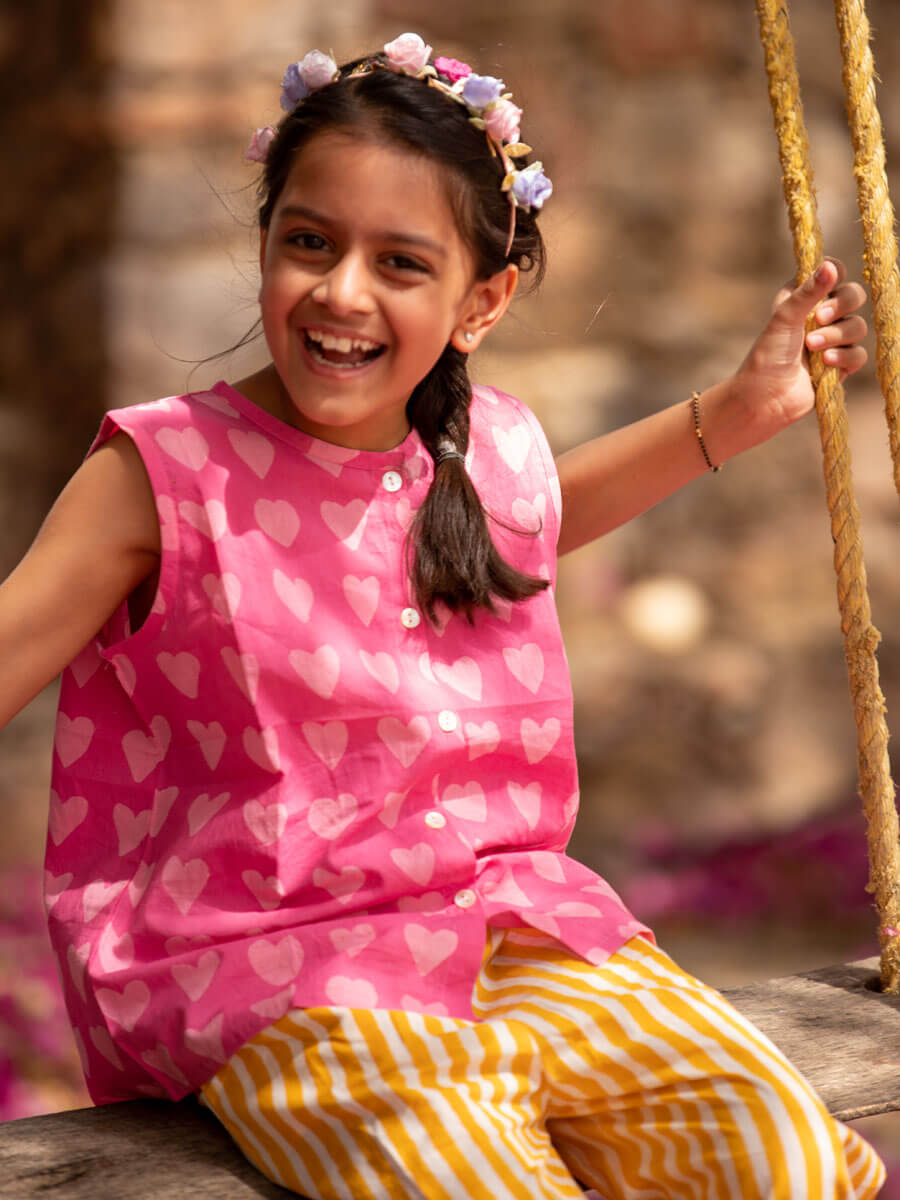 Set of 2 - Linda Organic Cotton Block Printed Top & Pants Set