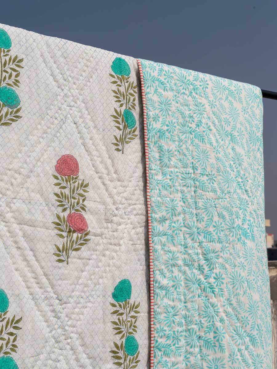 Comes in a fabric care bag. When not in use, fold neatly and store the quilt in the care bag. We suggest airing the quilt first time before use.