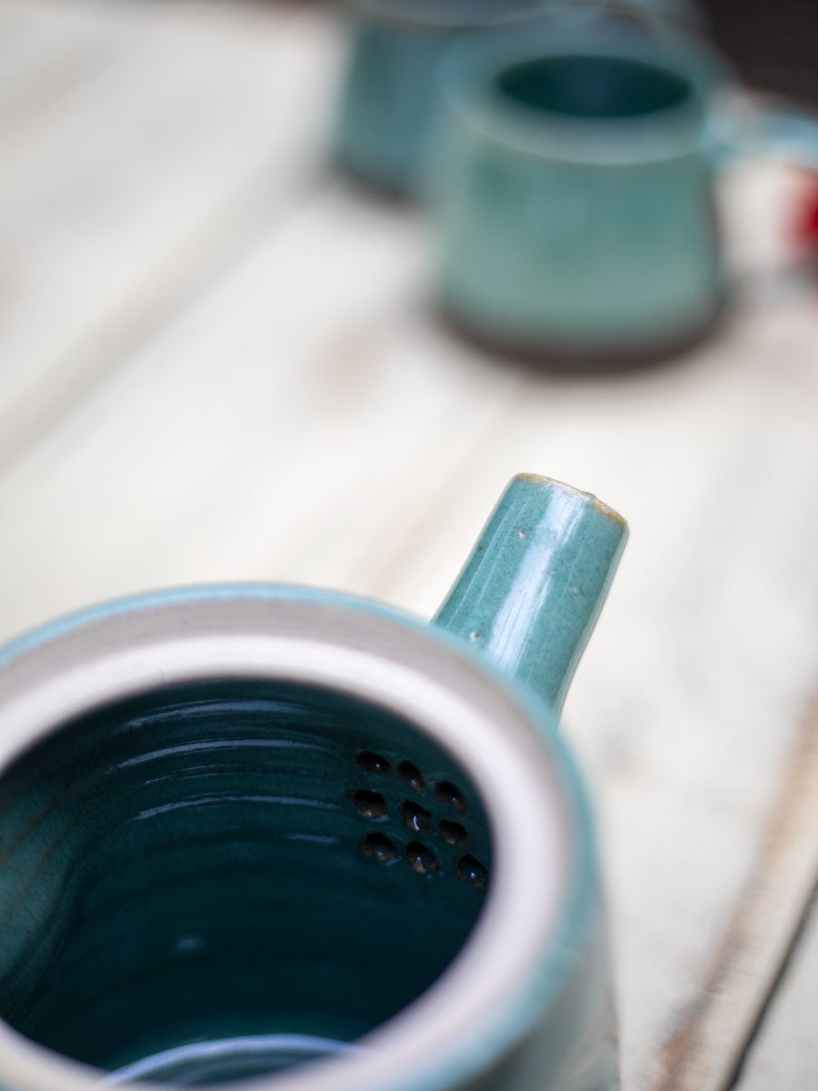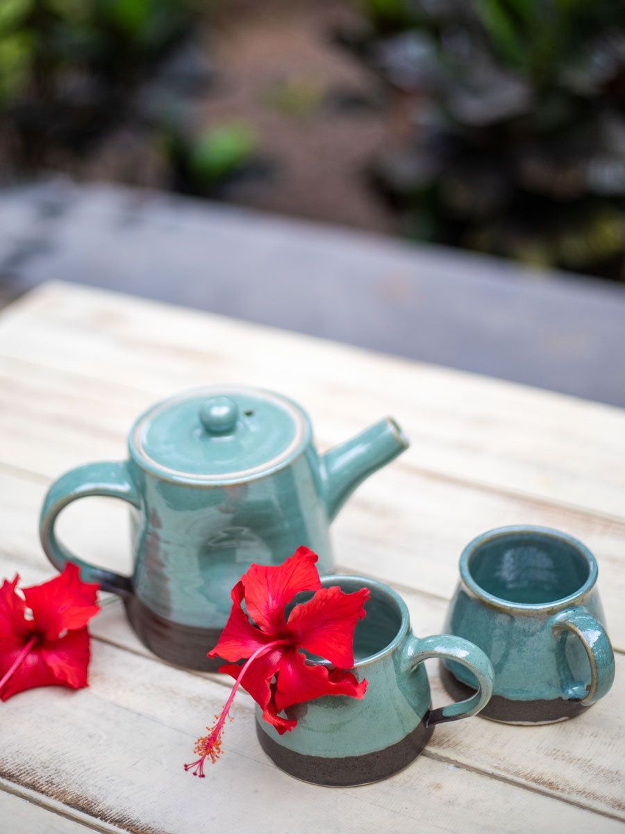 Turquoise Fall Hand-Thrown Dimpled Ceramic Tea Pot Set
