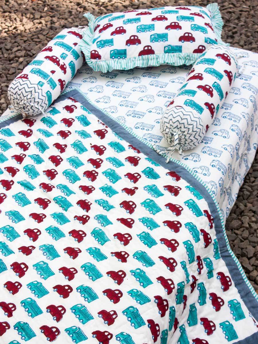 Presenting playful crib/cot hand block print GOTS certified organic cotton fitted sheets. The sheet contains elastic on the sides for easy operation and a snug fit. Made to fit all standard sizes of cots and cribs.