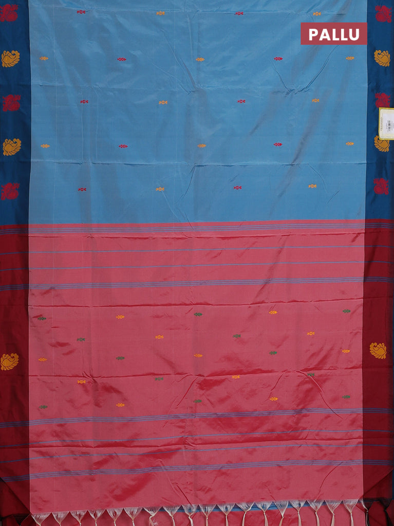 Arani semi silk saree blue and maroon with thread woven buttas and piping border