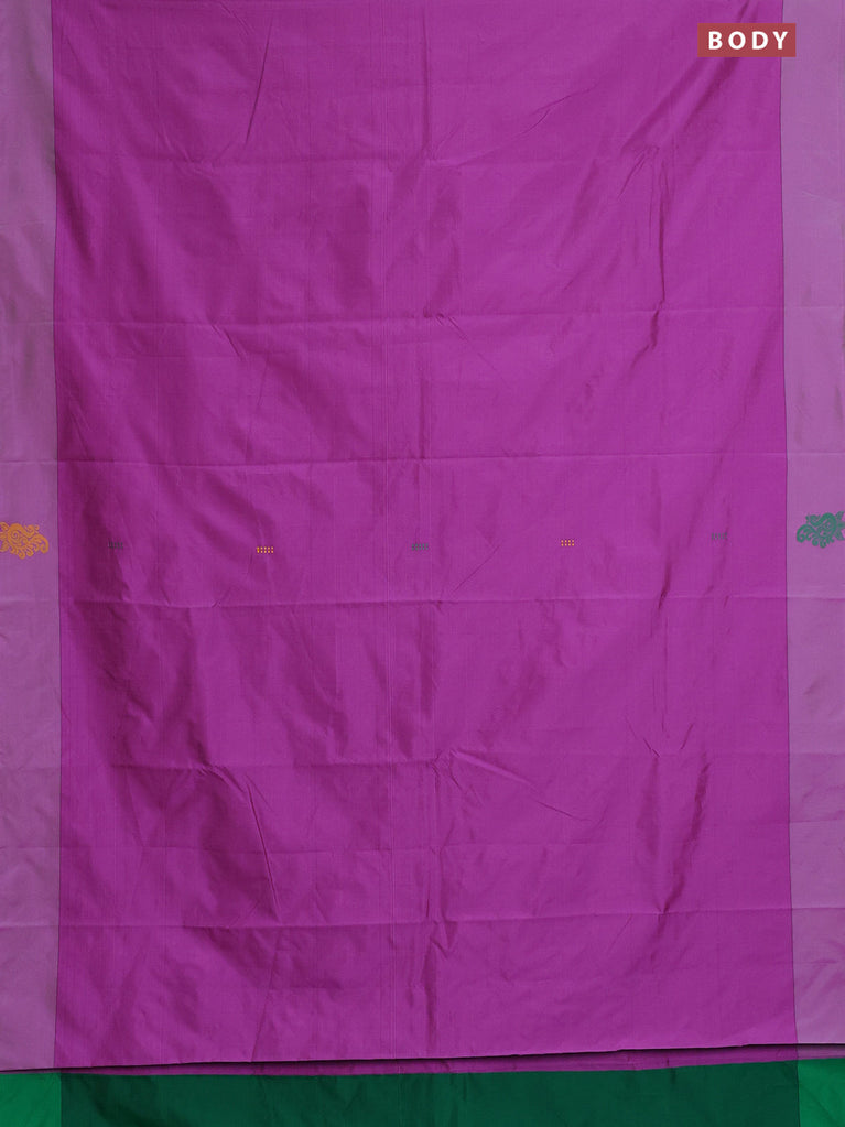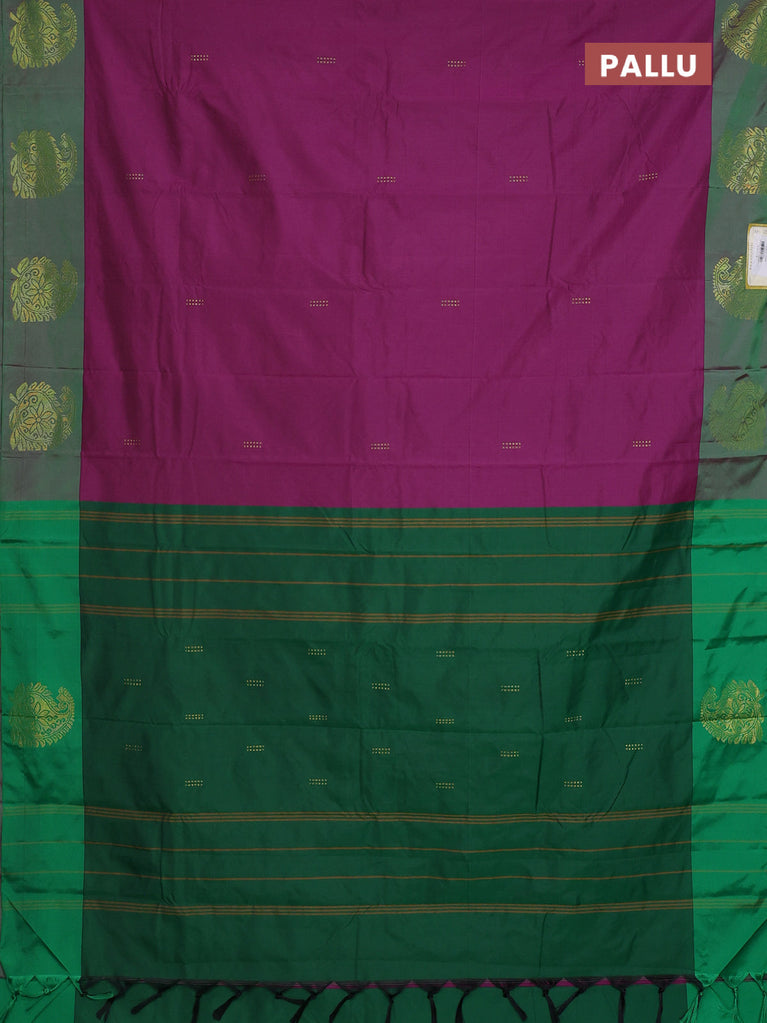 Arani semi silk saree purple and green with zari woven buttas and paisley zari woven butta border