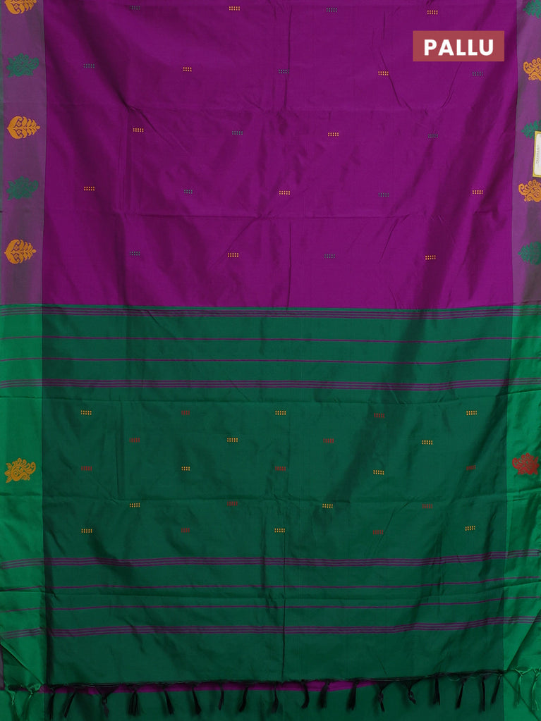 Arani semi silk saree purple and dark green with thread woven buttas and thread woven butta border