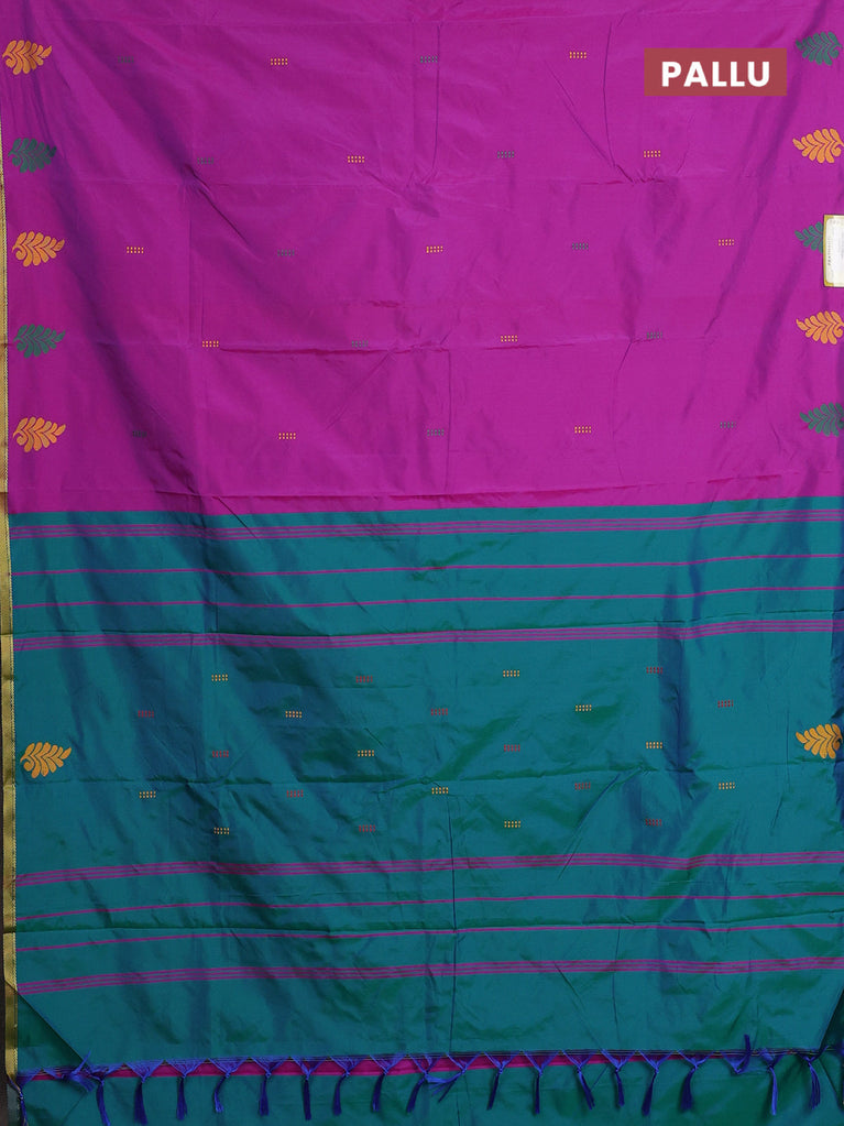 Arani semi silk saree purple and dual shade of teal green with thread woven buttas and piping border