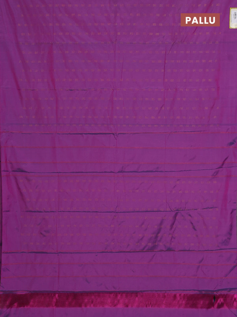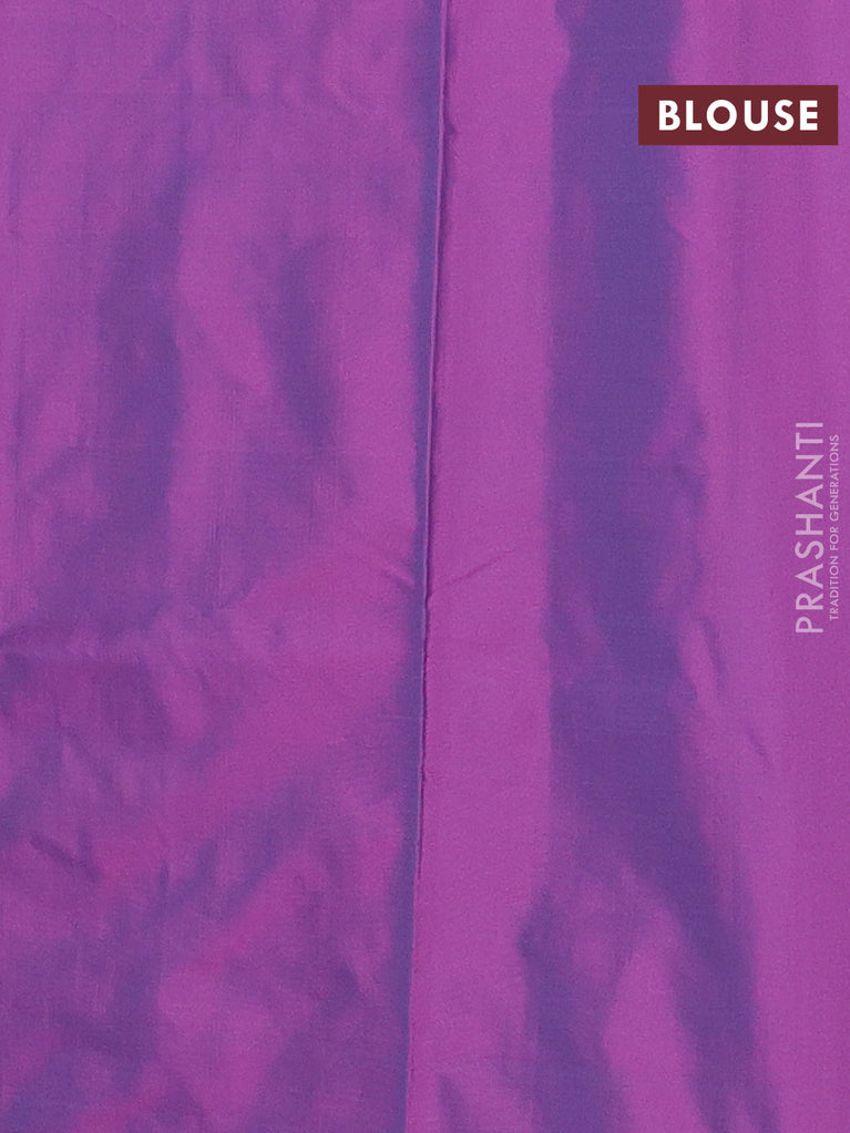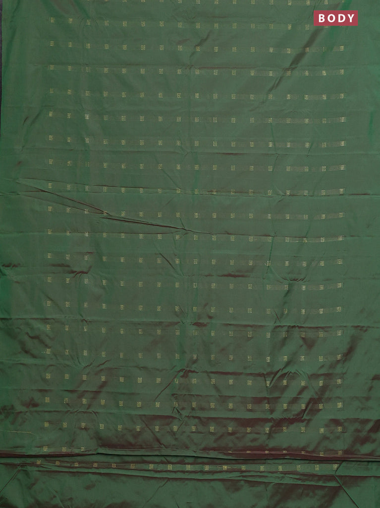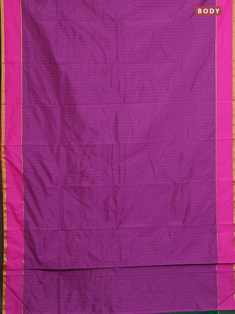 Arani semi silk saree purple and dual shade of green with zari woven buttas and paisley zari woven butta border