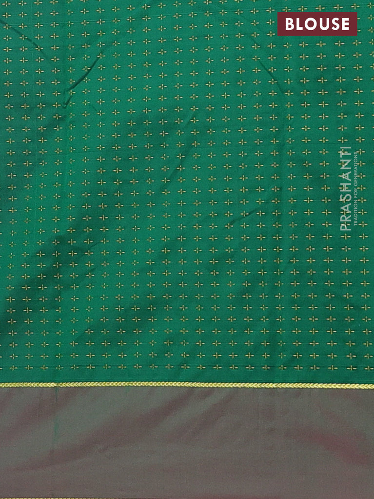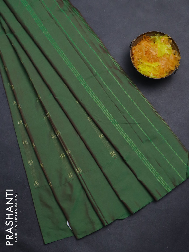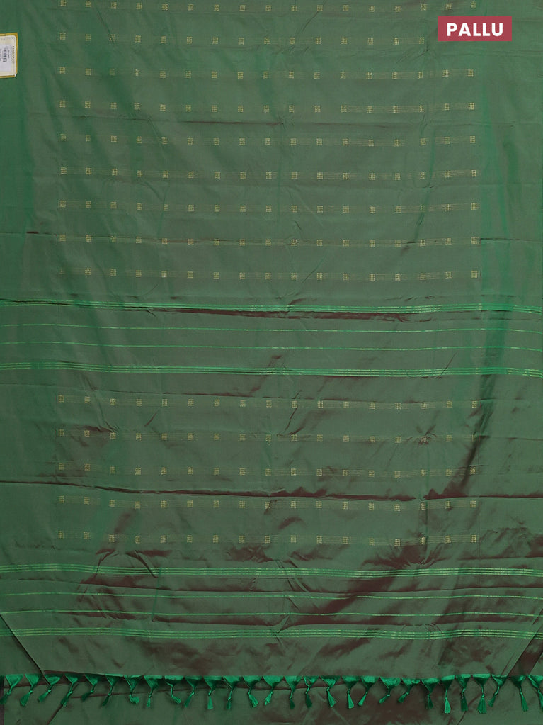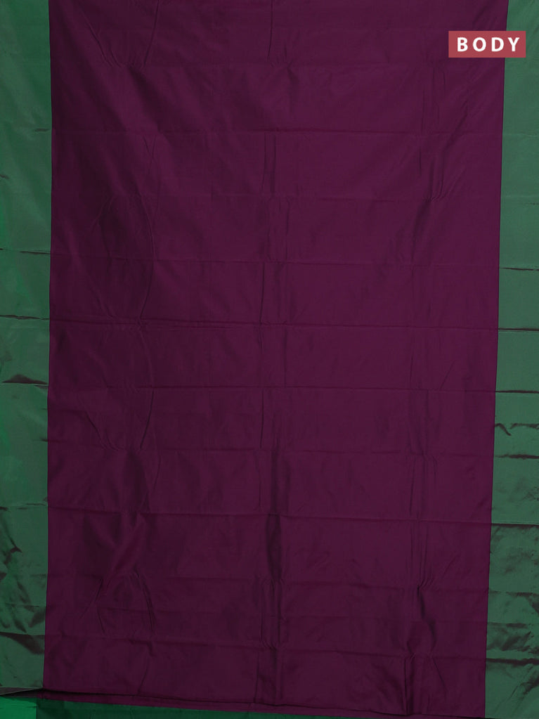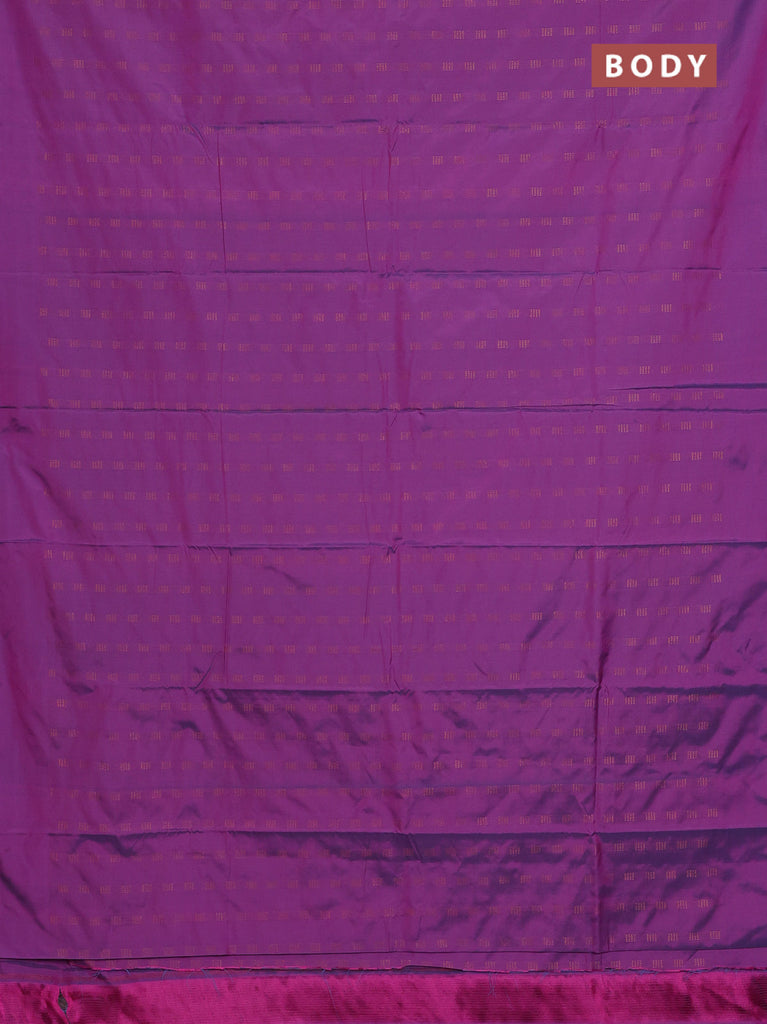Arani semi silk saree purple and dual shade of green with zari woven buttas and paisley zari woven butta border