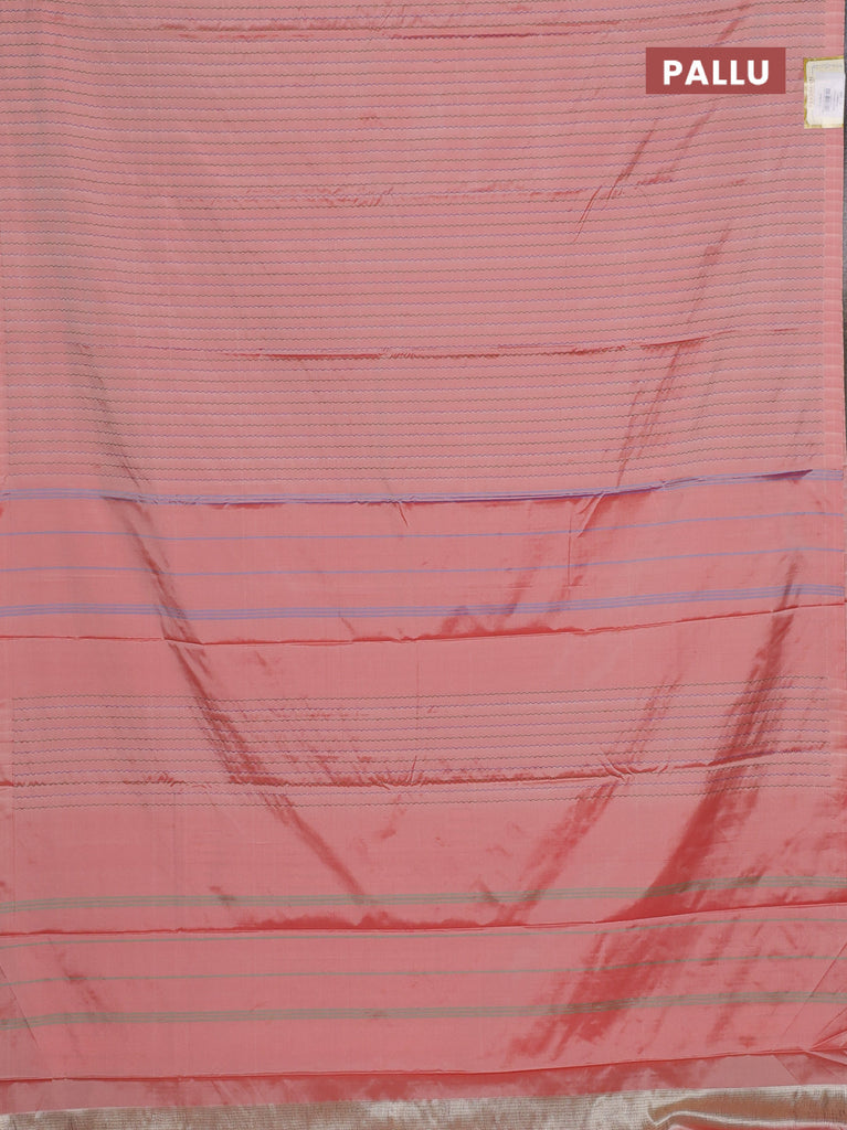 Arani semi silk saree purple shade with allover silver zari weaves in borderless style