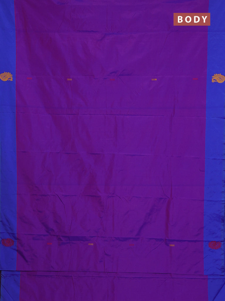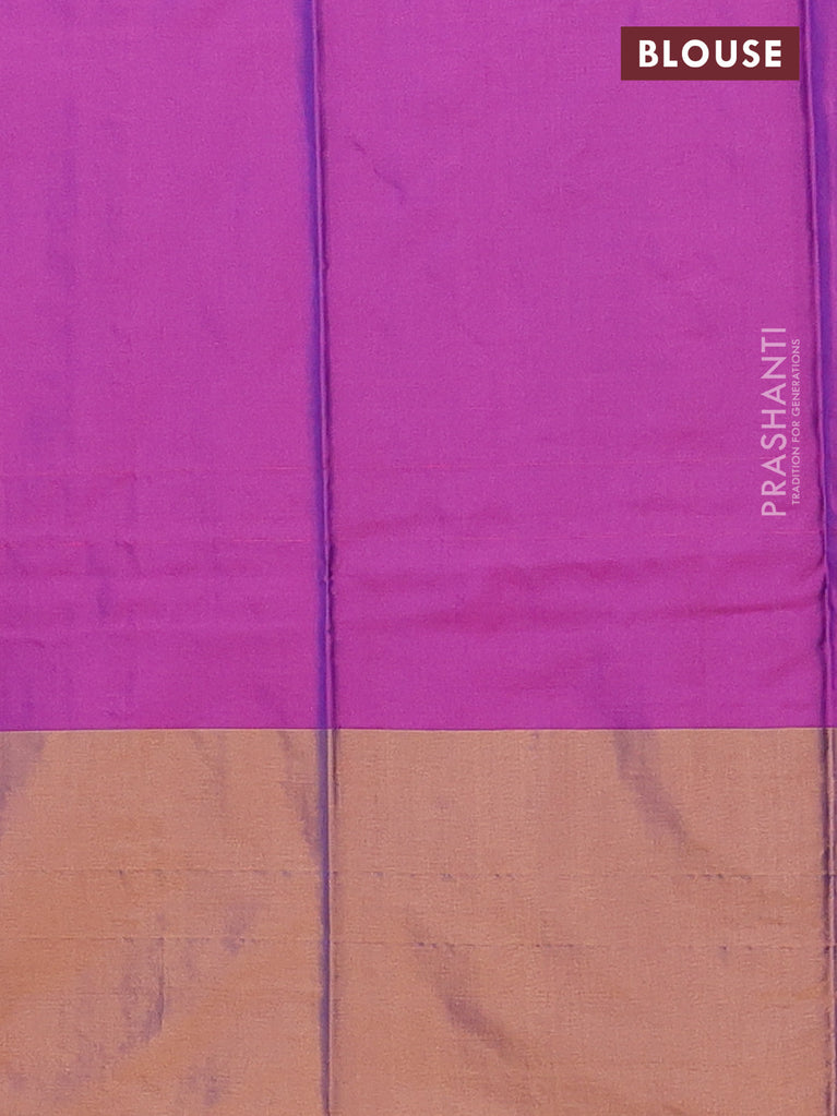 Arani semi silk saree purple and cs blue with allover copper zari weaves and copper zari woven border