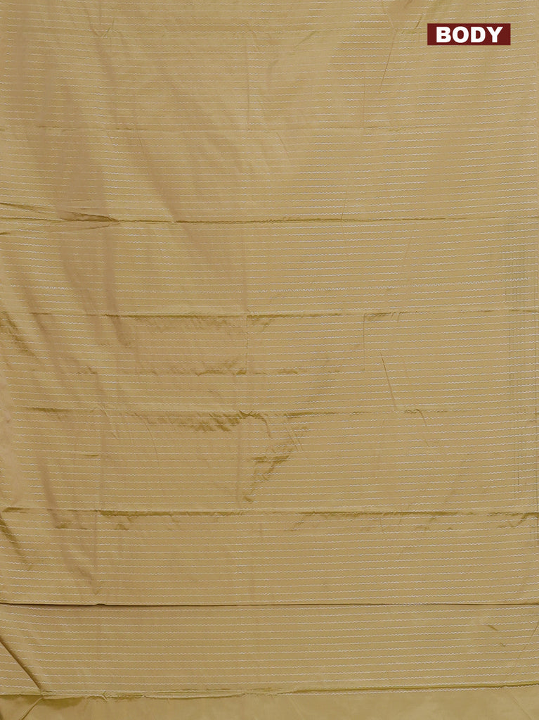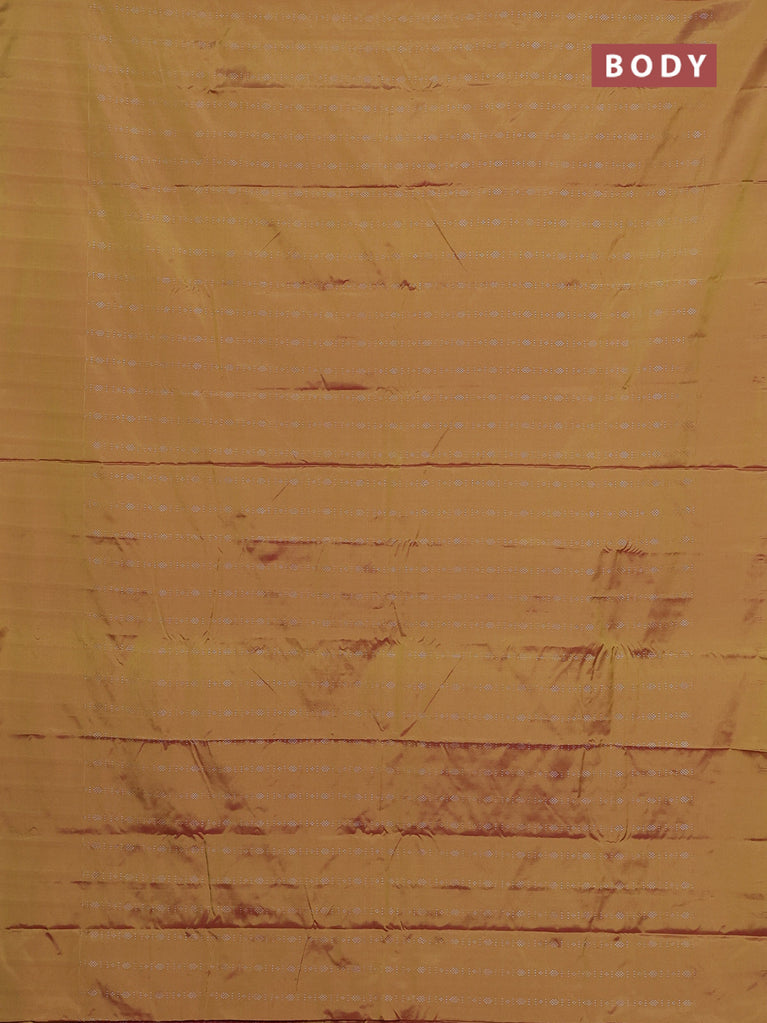 Arani semi silk saree elaichi green with allover copper zari weaves in borderless style