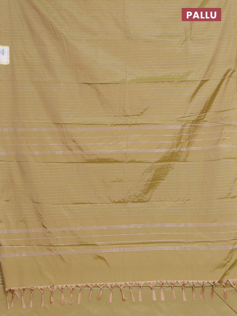 Arani semi silk saree dual shade of yellow with allover silver zari weaves in borderless style