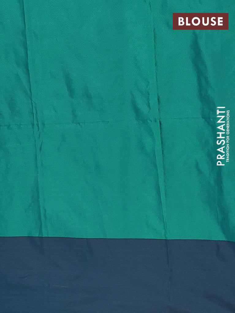 Arani semi silk saree green and peacock blue with allover silver & copper zari weaves and zari woven border