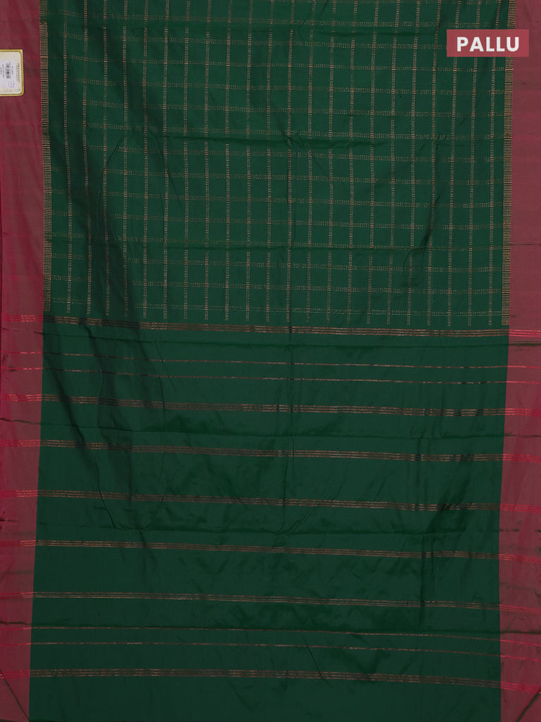 Arani semi silk saree green and magenta pink with allover copper zari weaves and zari checked border