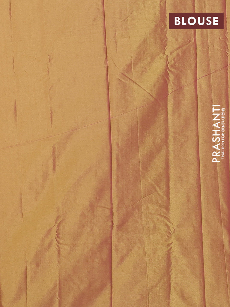 Arani semi silk saree dual shade of yellowish pink with allover silver zari weaves in borderless style