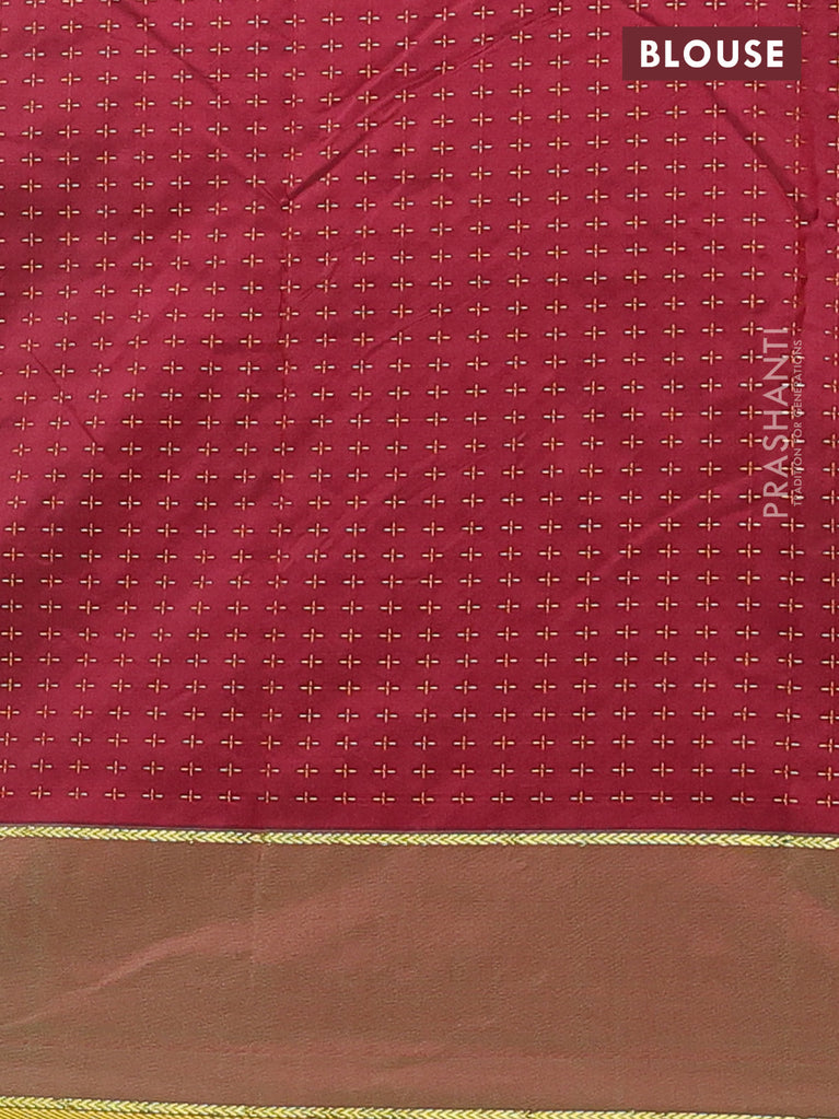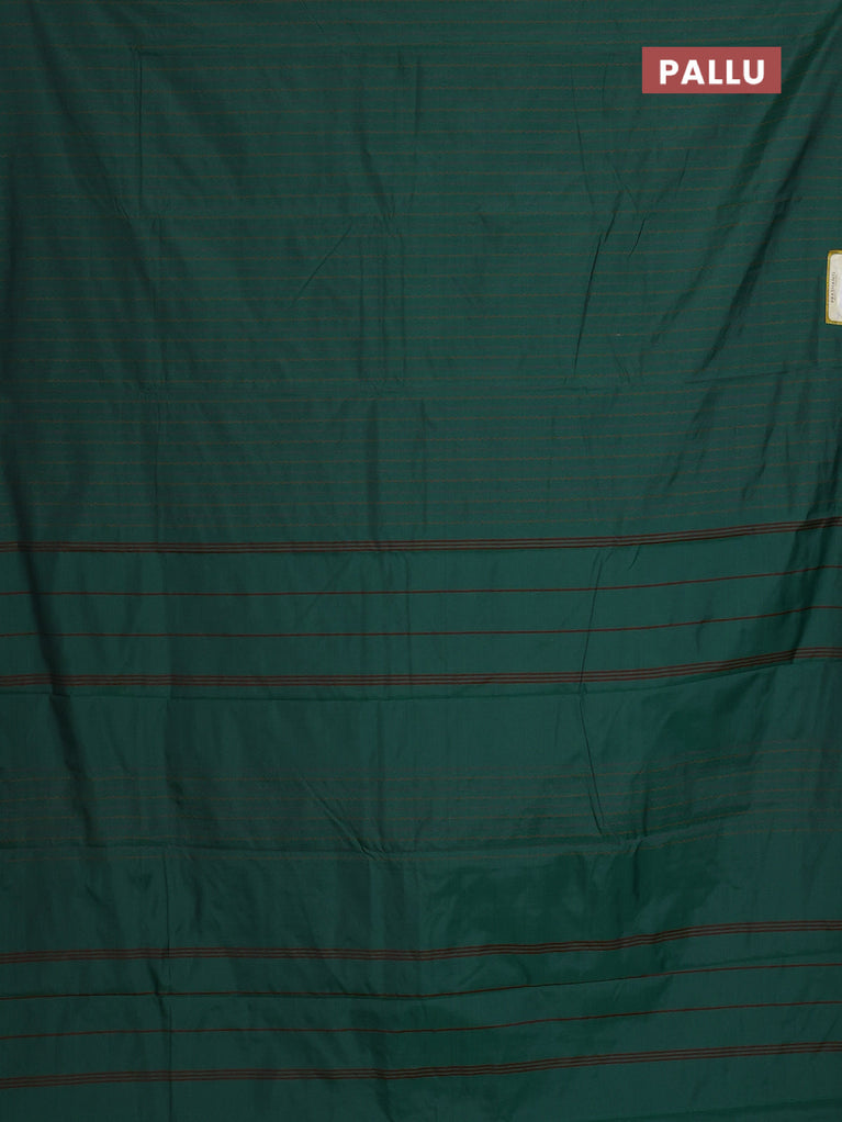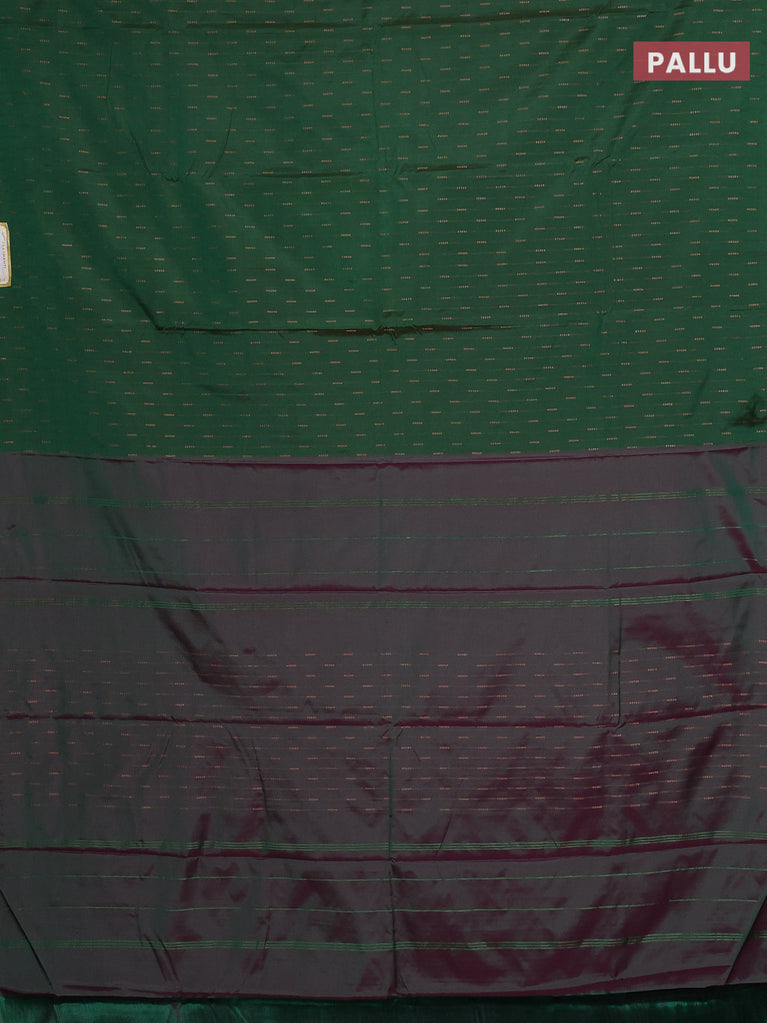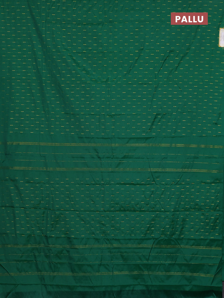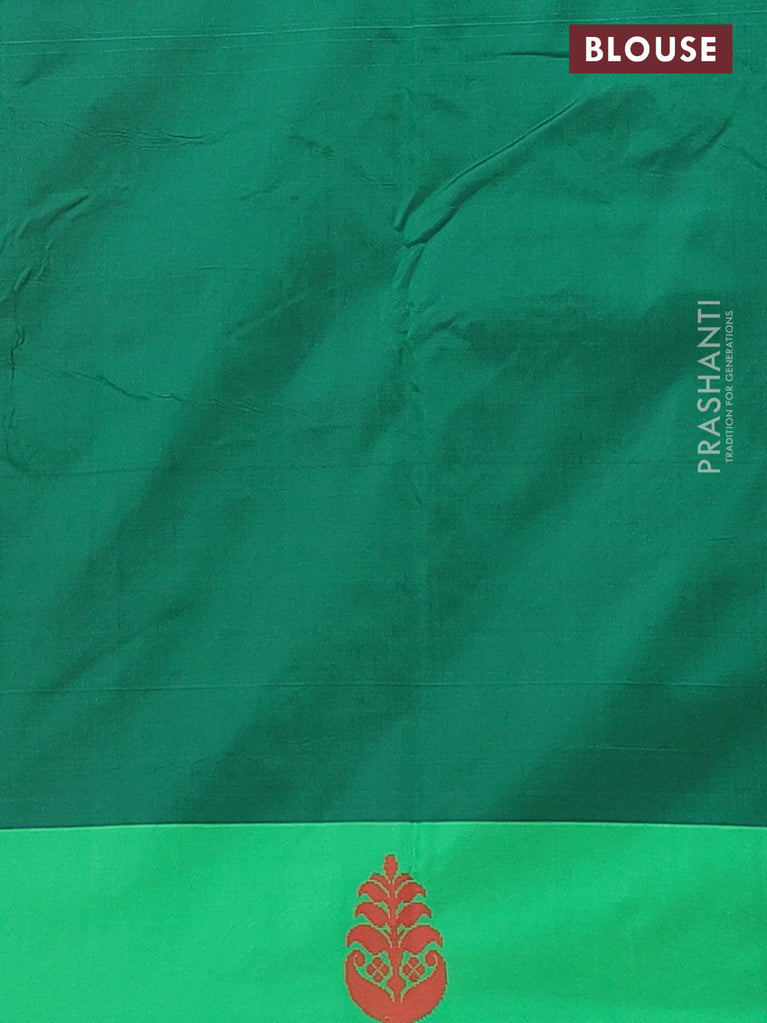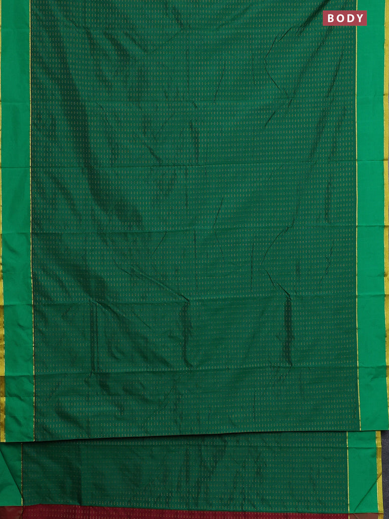 Arani semi silk saree green with copper zari woven buttas in borderless style