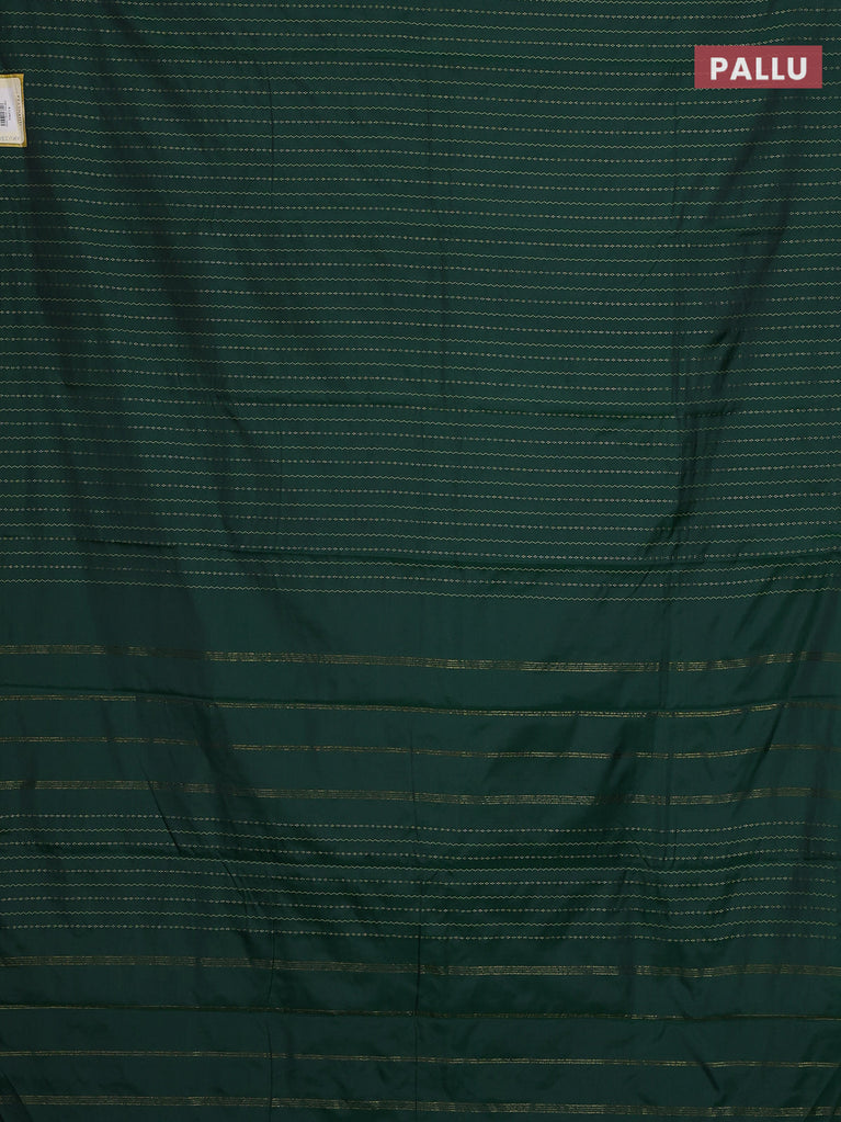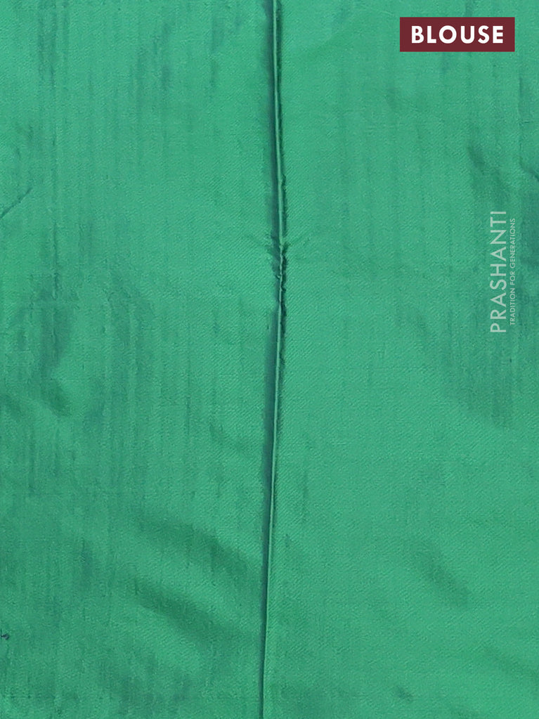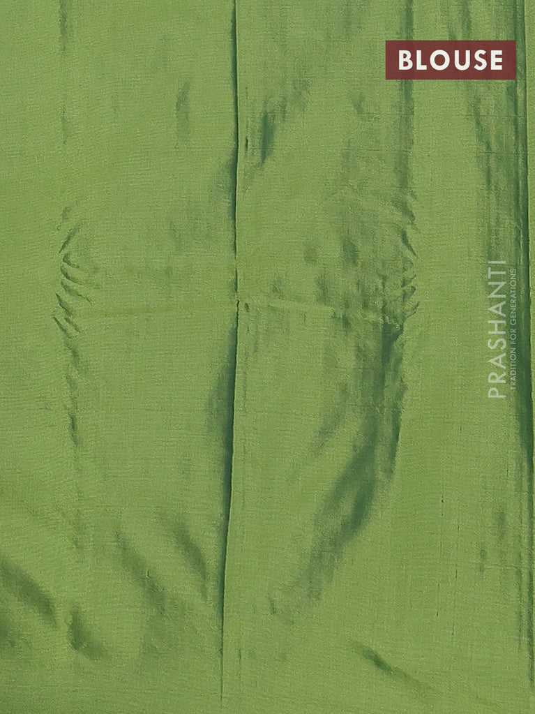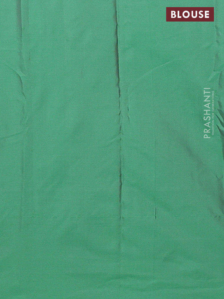 Arani semi silk saree green with allover silver zari weaves in borderless style