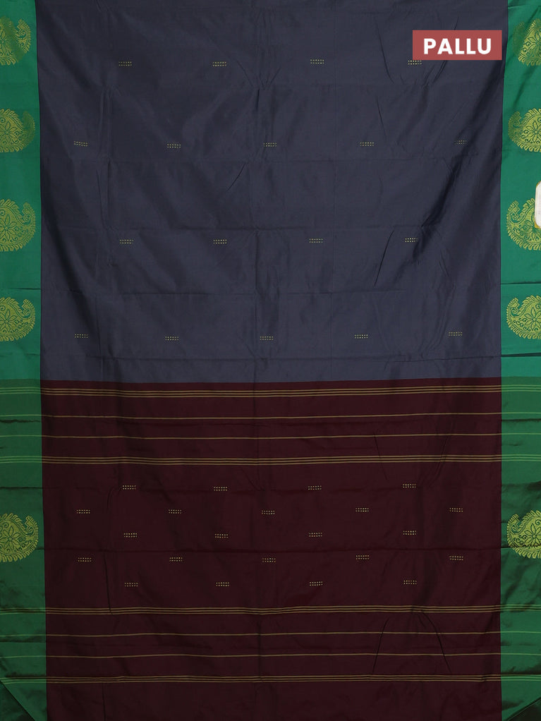 Arani semi silk saree grey and dark green with thread woven buttas and thread woven butta border