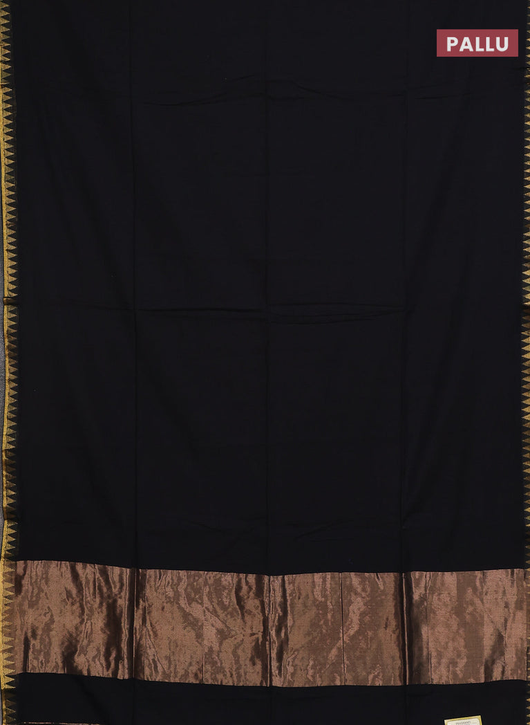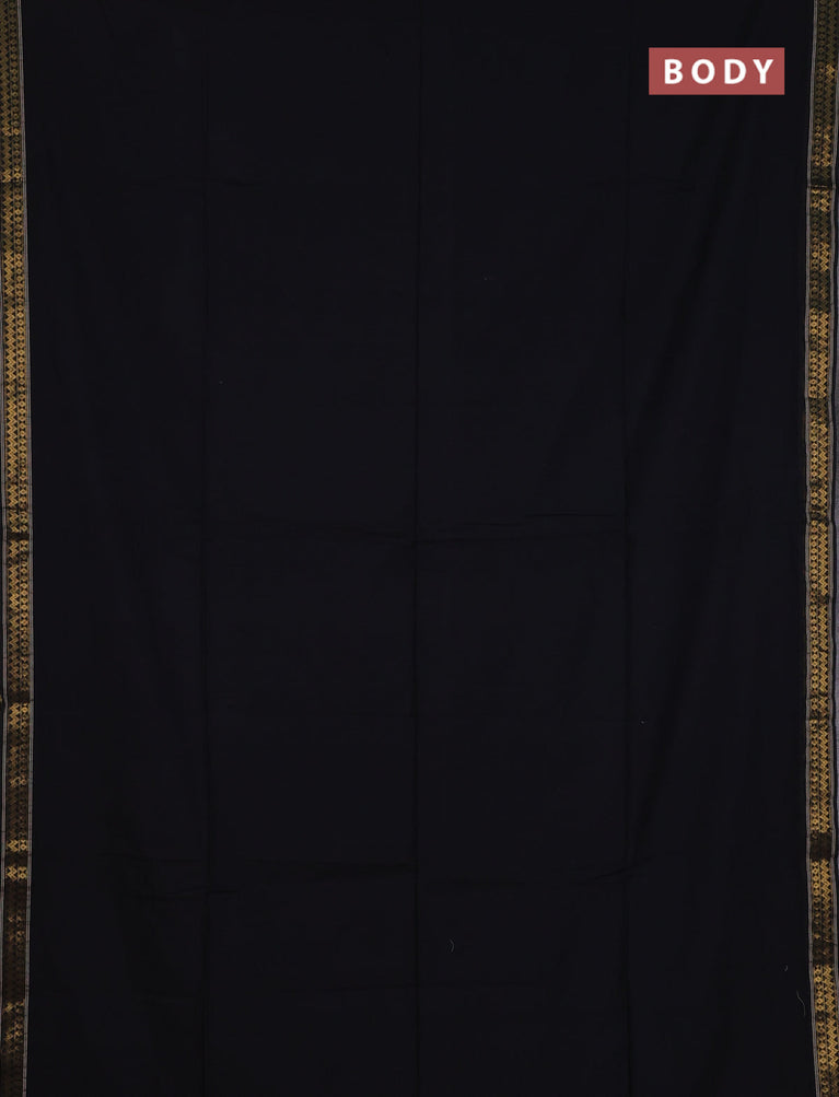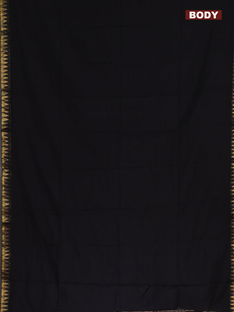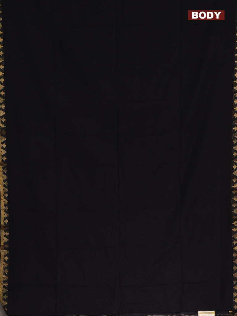 Bengal soft cotton saree black and blue with plain body and zari woven border