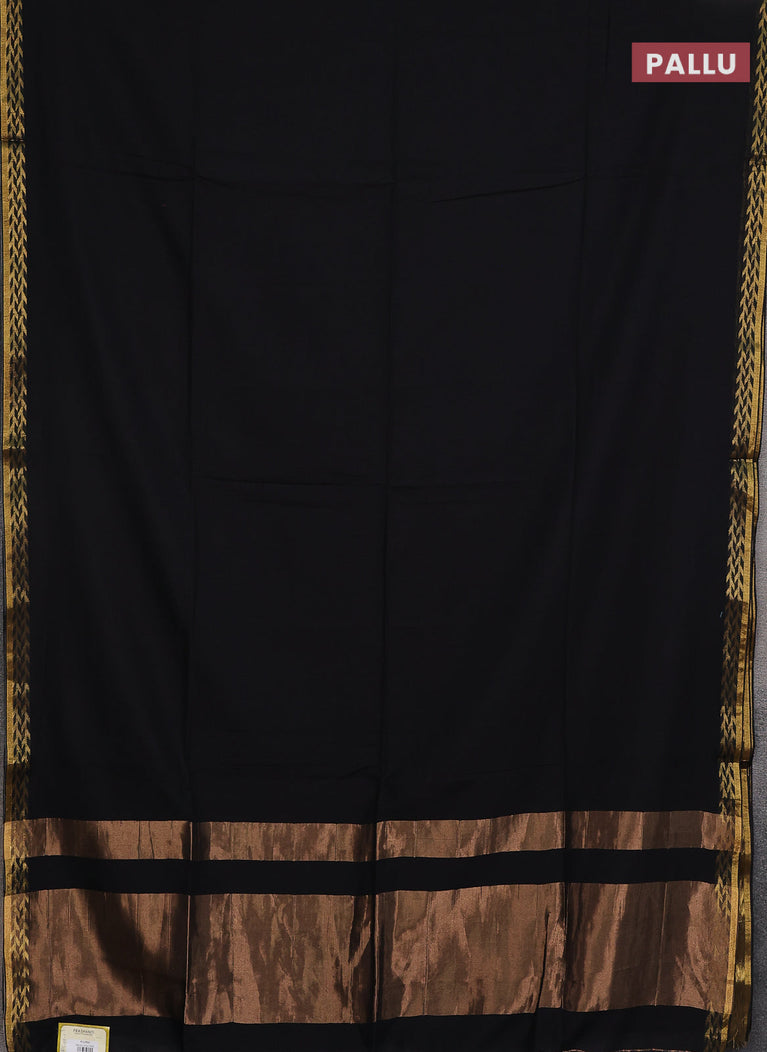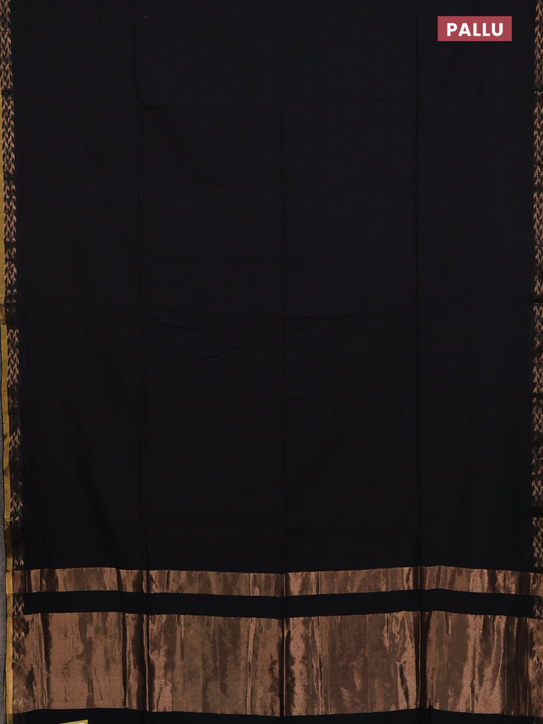 Bengal soft cotton saree black and bluish grey with plain body and zari woven border