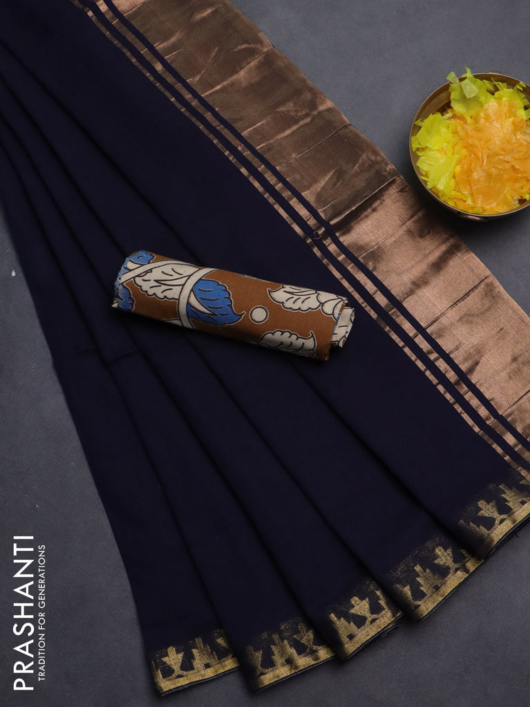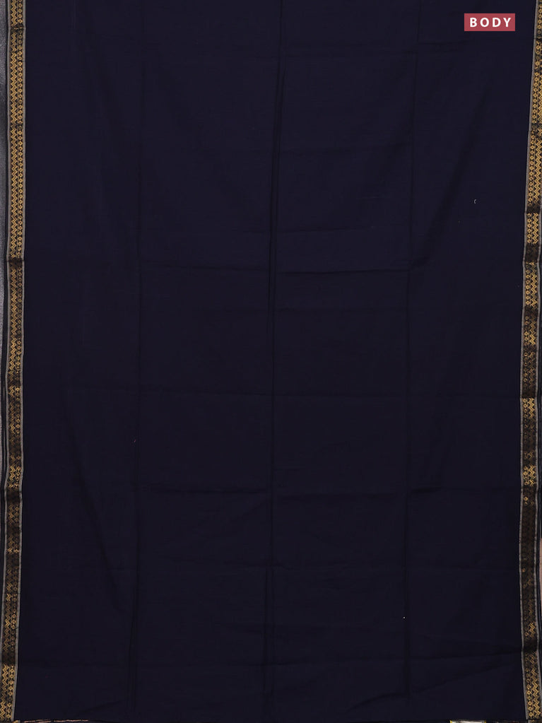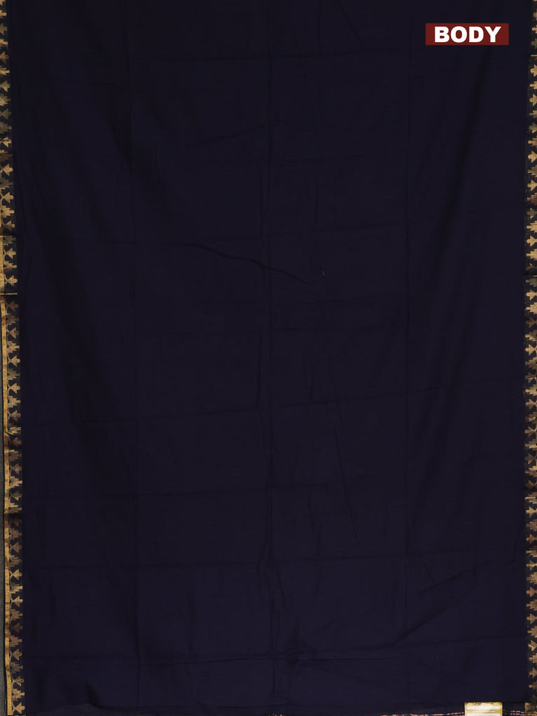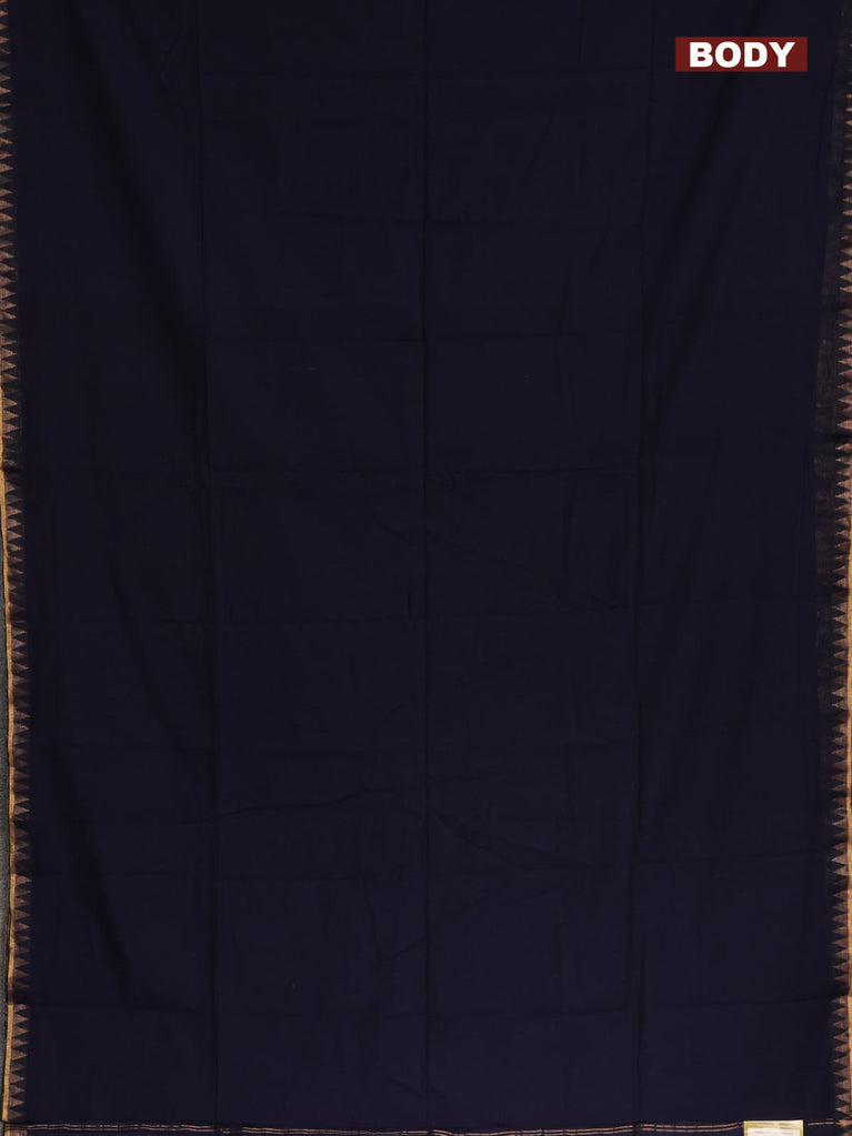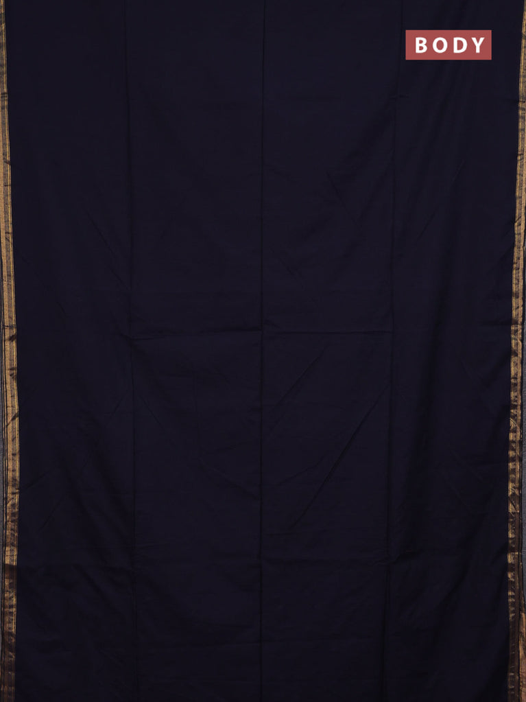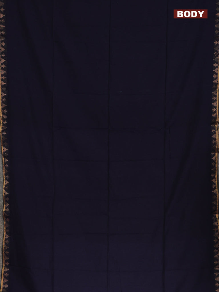 Bengal soft cotton saree navy blue with plain body and zari woven border