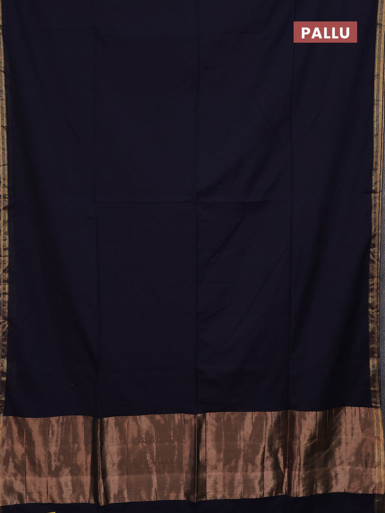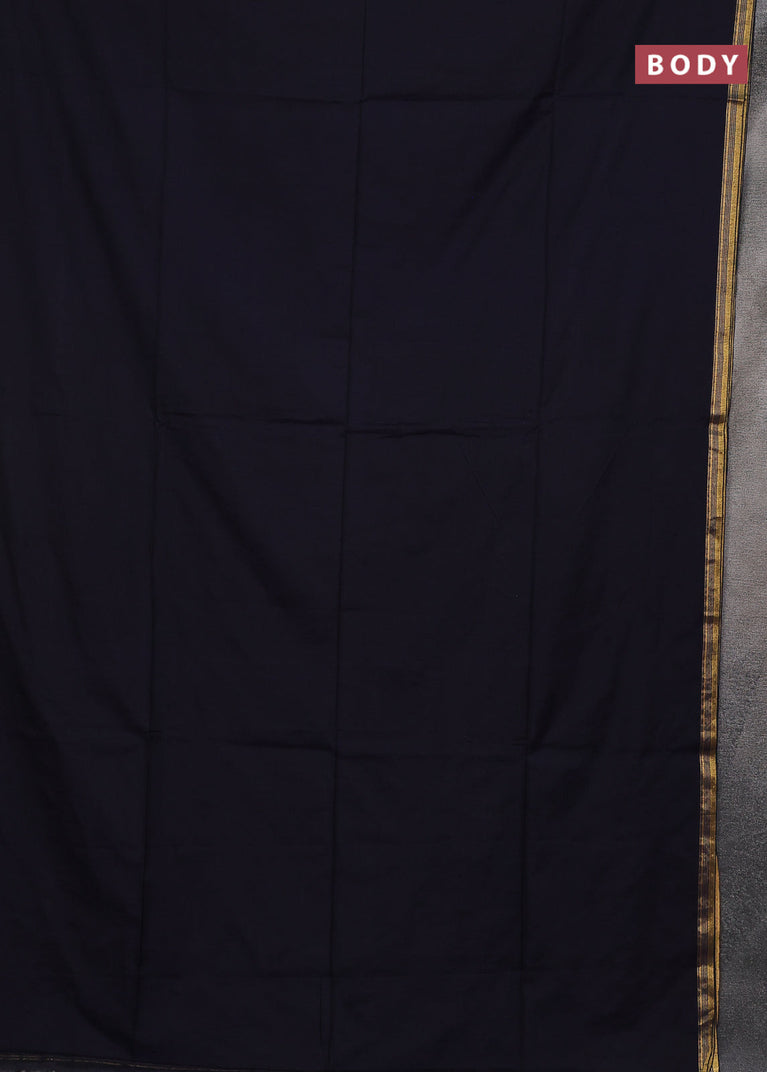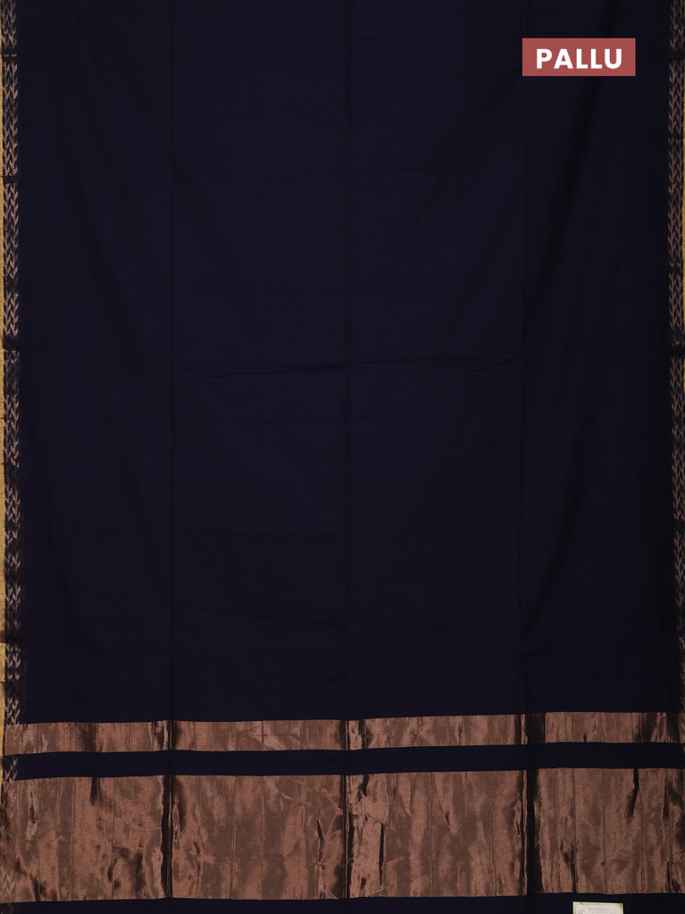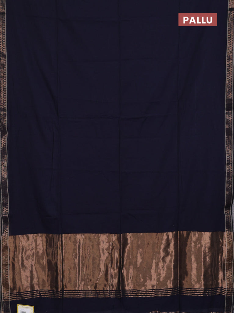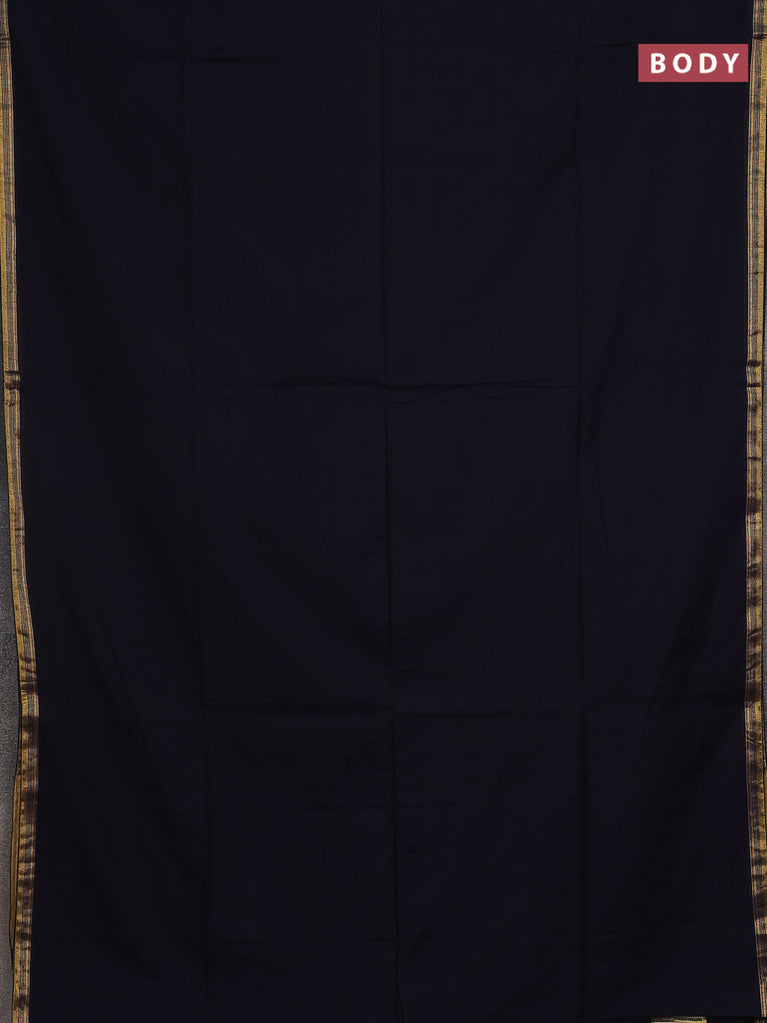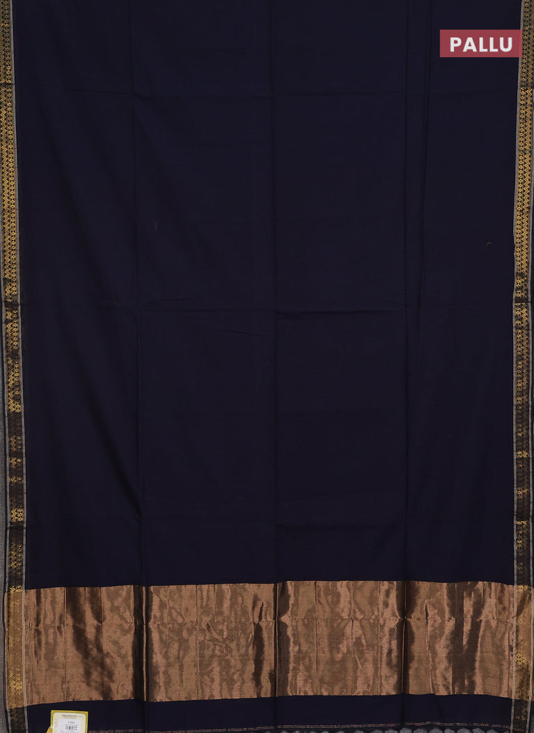 Bengal soft cotton saree navy blue with plain body and zari woven border