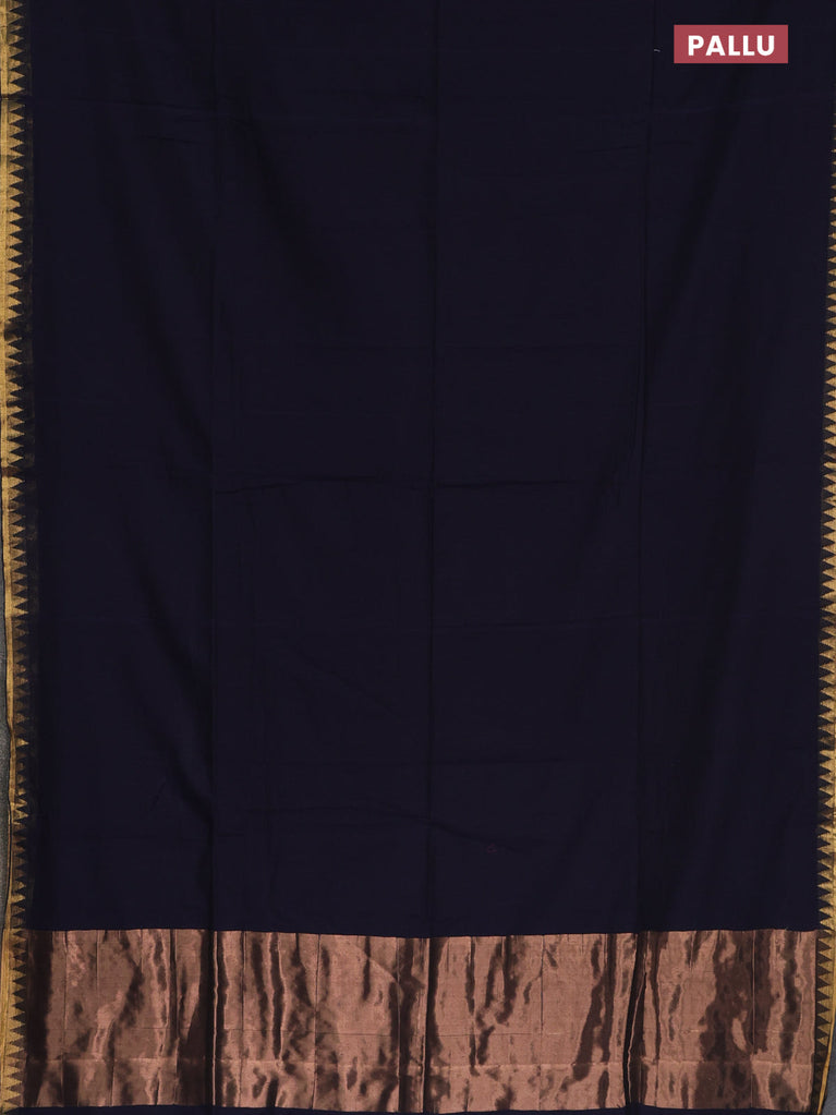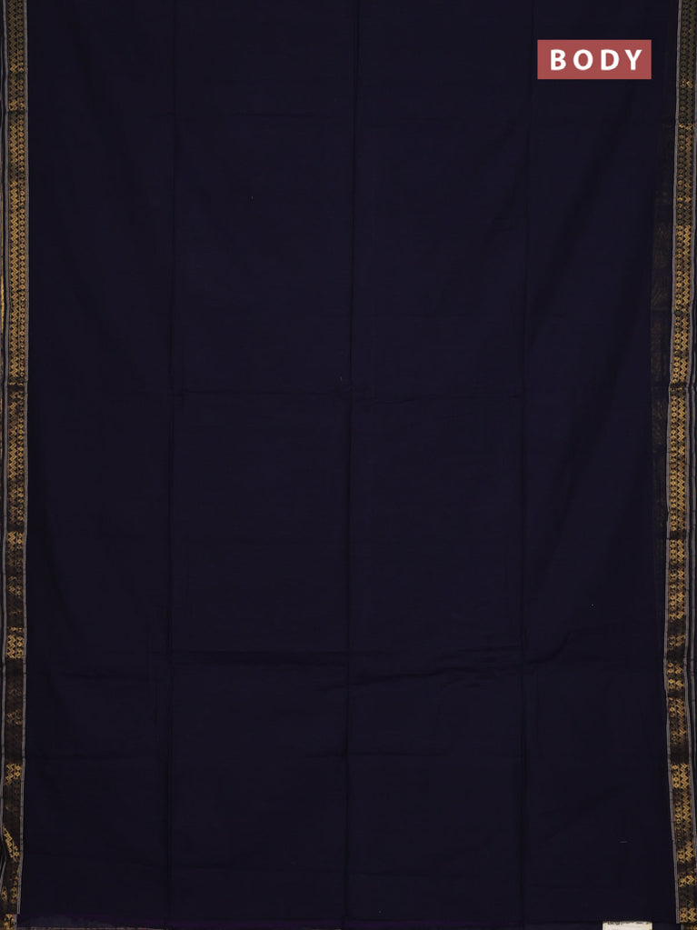 Bengal soft cotton saree navy blue and violet with plain body and zari woven border