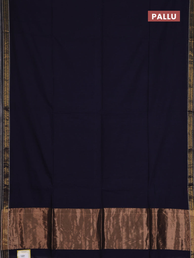 Bengal soft cotton saree navy blue and grey with plain body and zari woven border