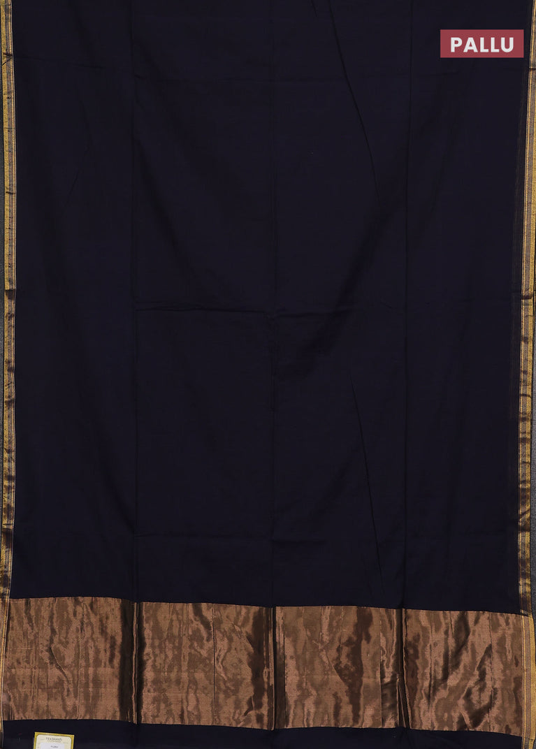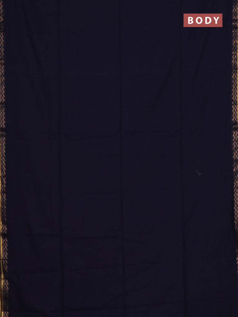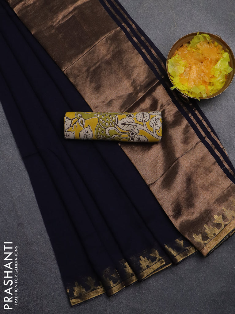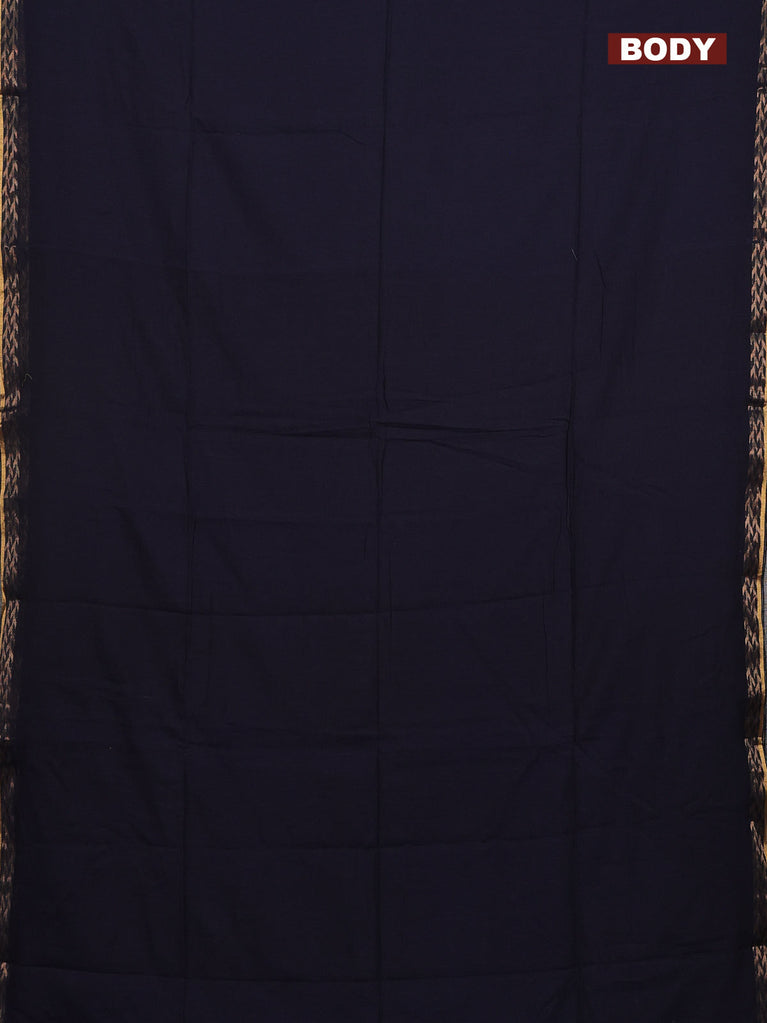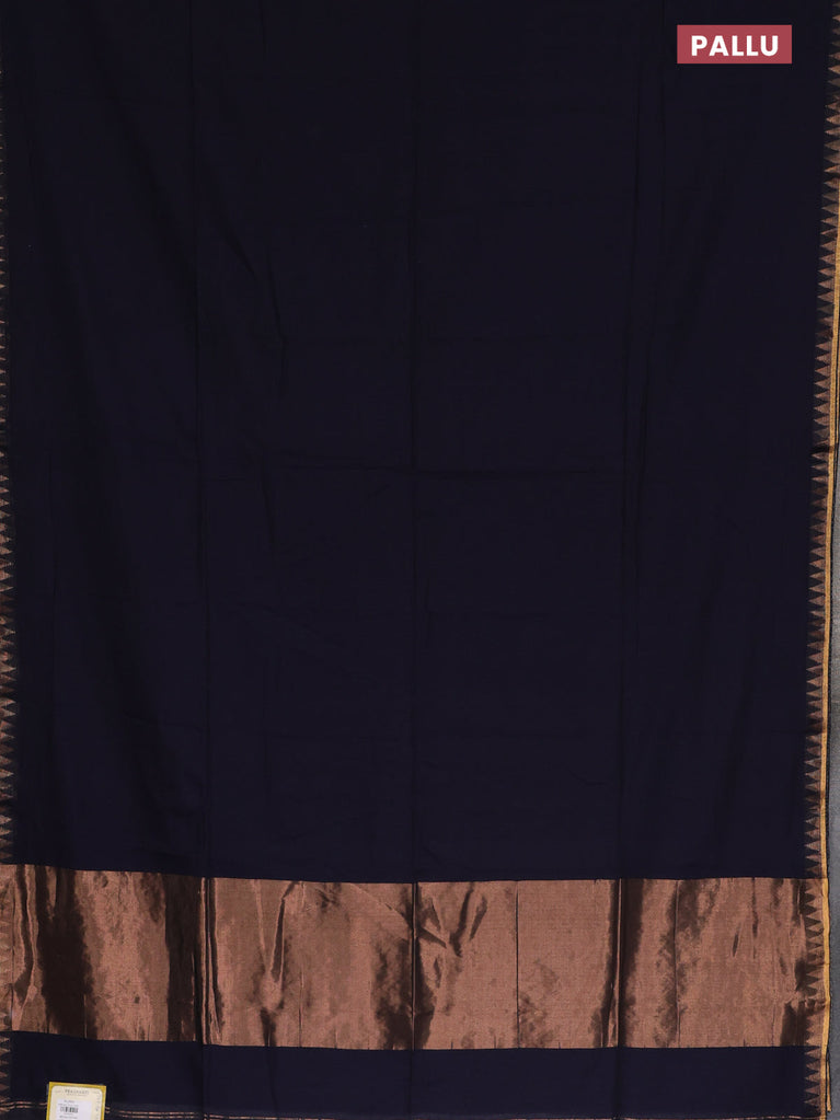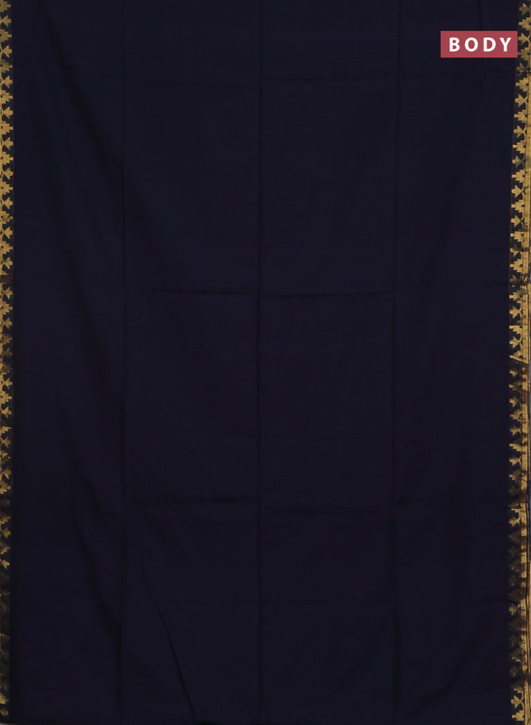 Bengal soft cotton saree navy blue and dark mustard with plain body and zari woven border