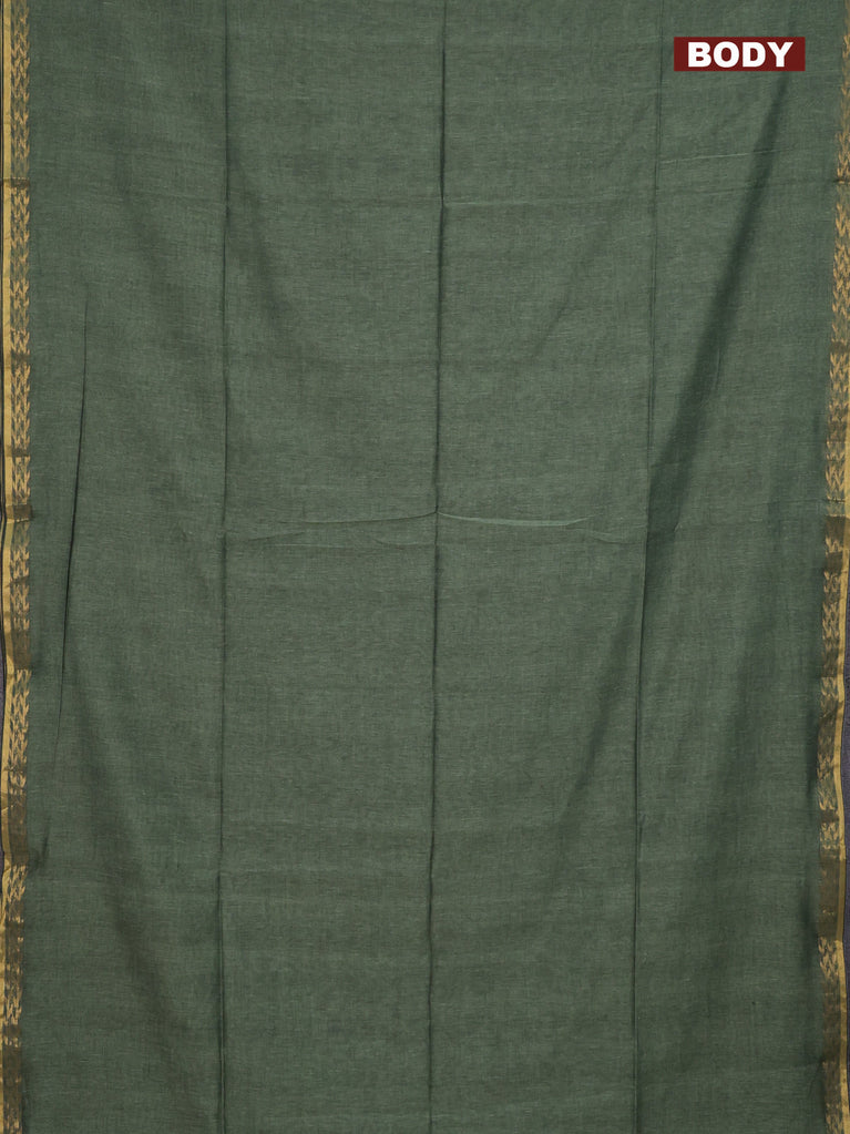 Bengal soft cotton saree navy blue and mehendi green with plain body and zari woven border