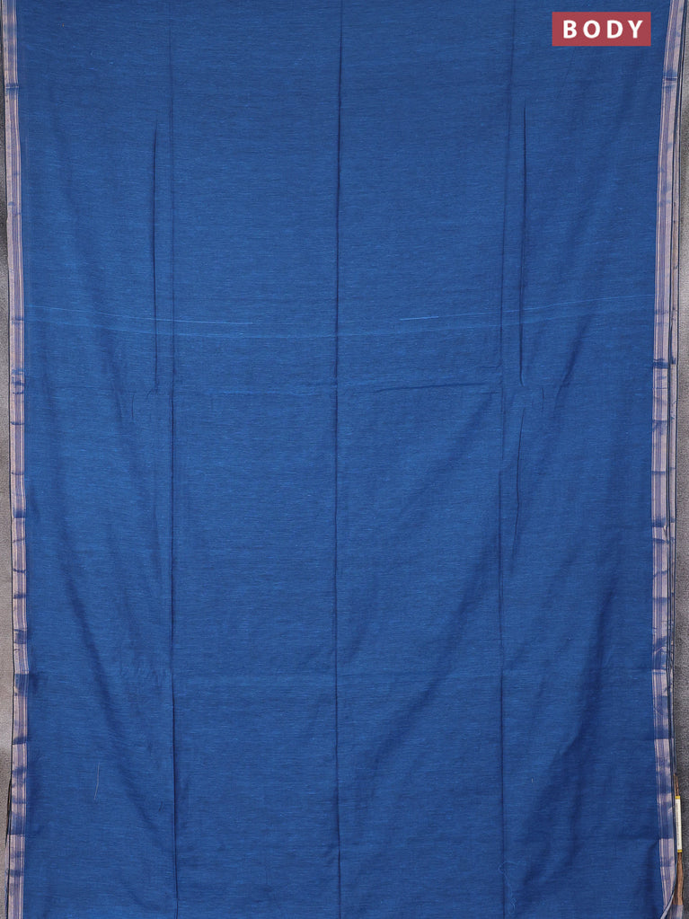 Bengal soft cotton saree cs blue and mustard yellow with plain body and zari woven border