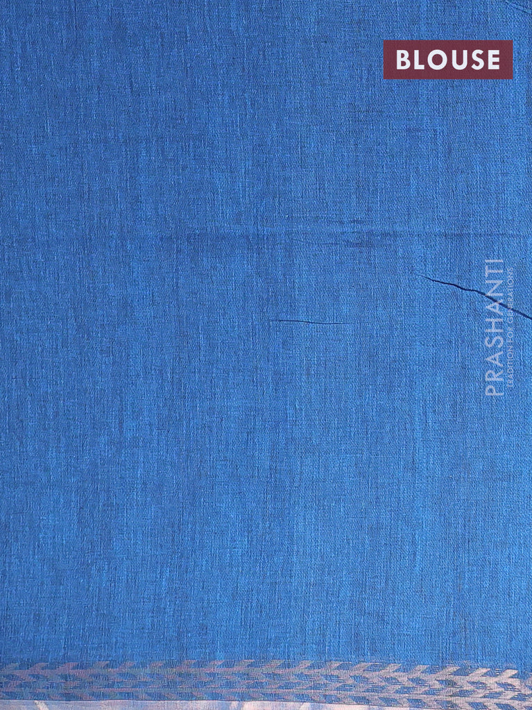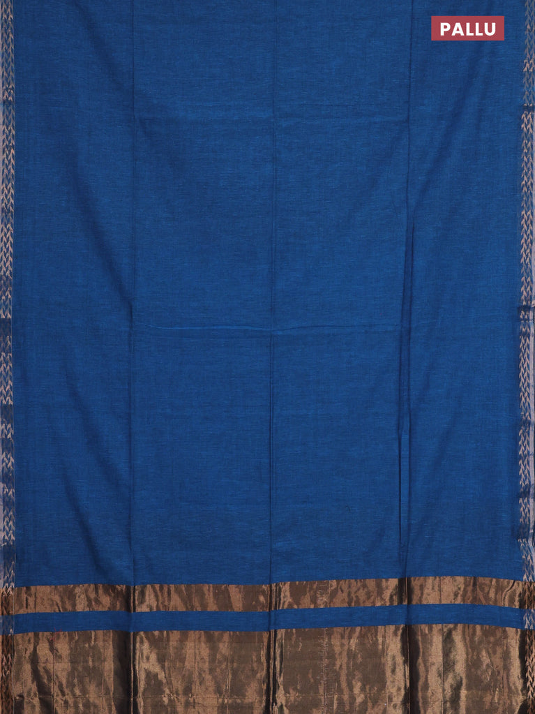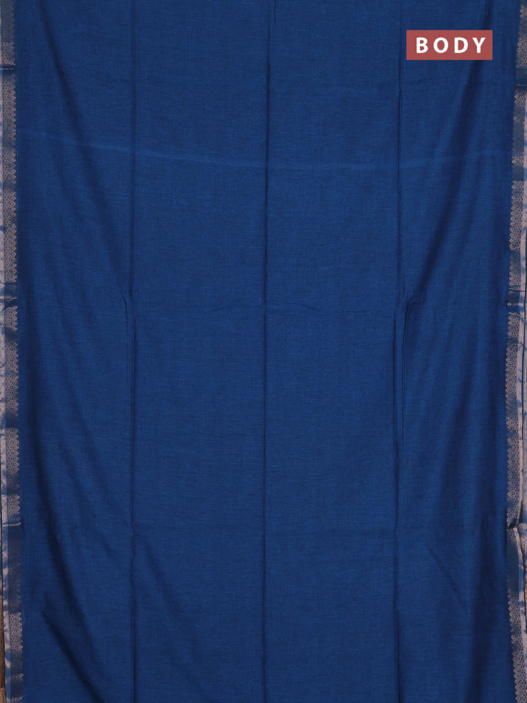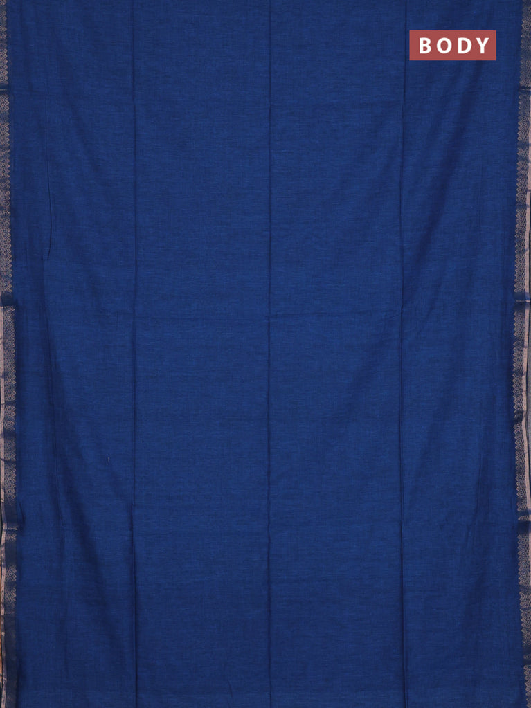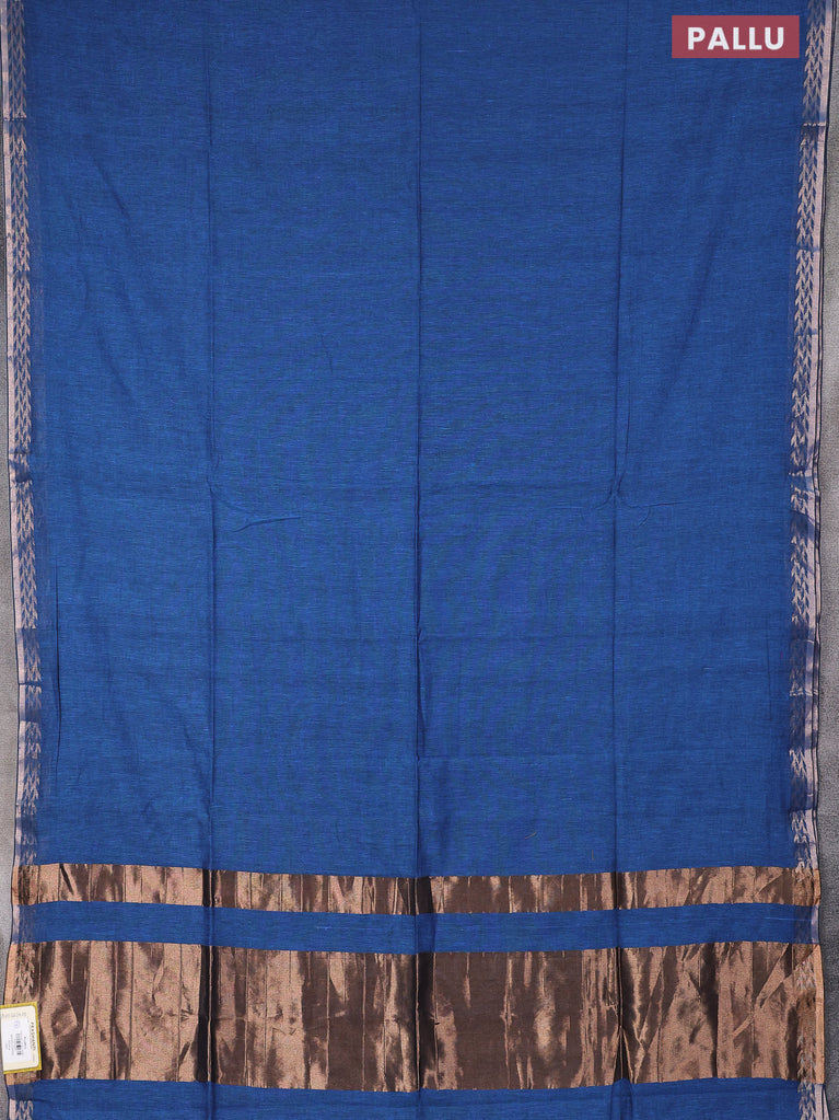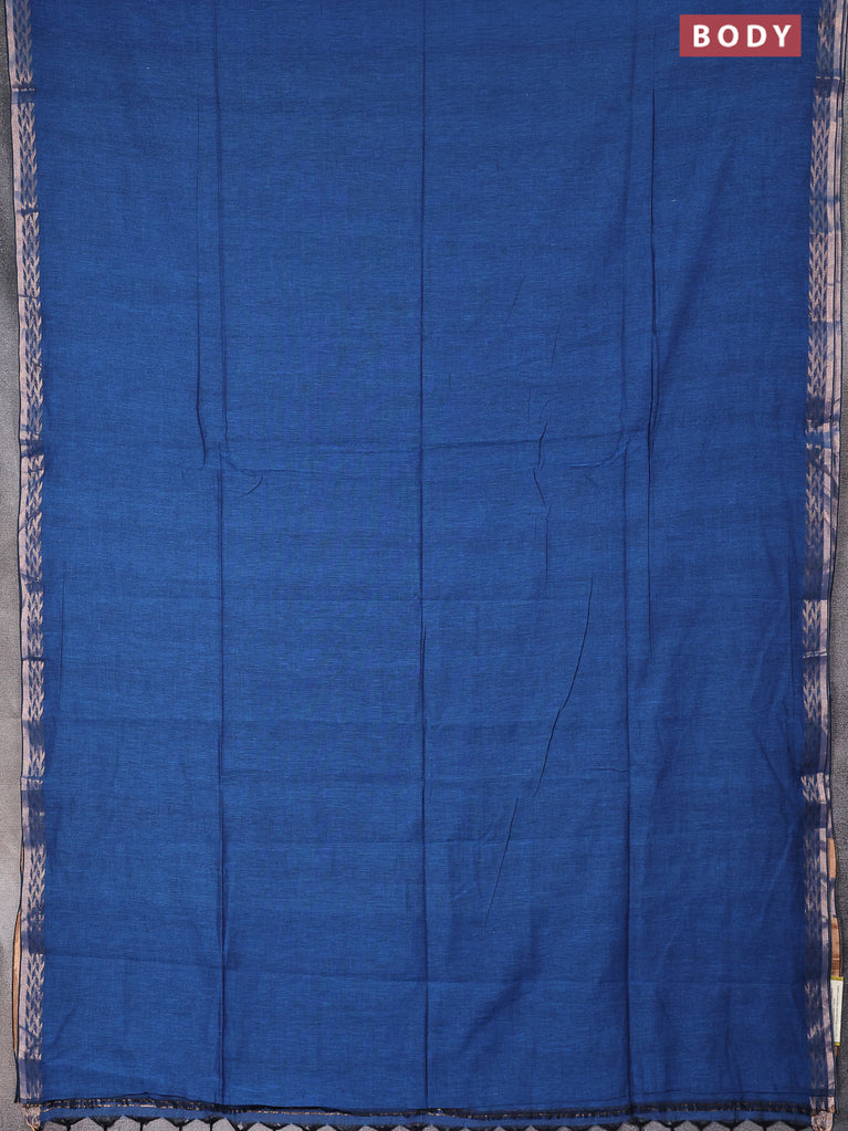 Bengal soft cotton saree cs blue with plain body and zari woven piping border
