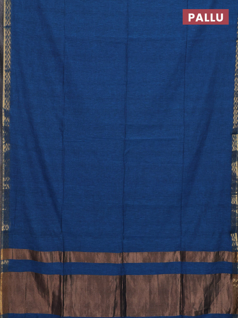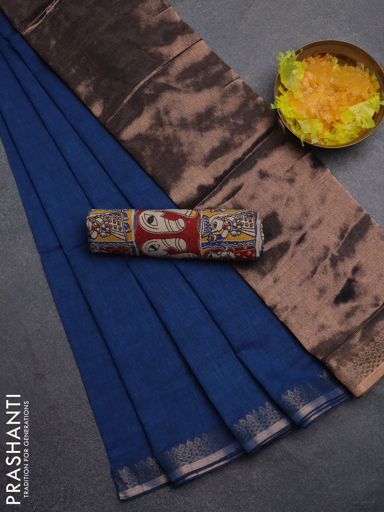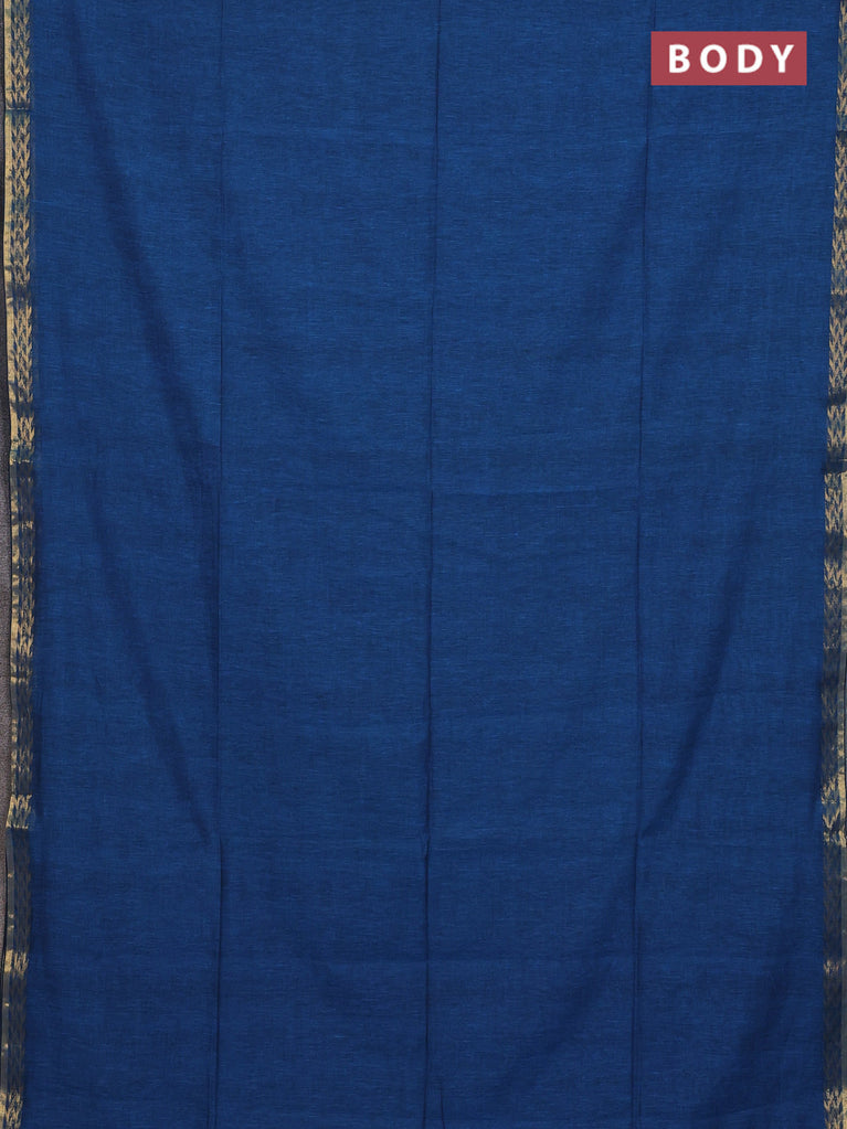 Bengal soft cotton saree cs blue with plain body and zari woven border