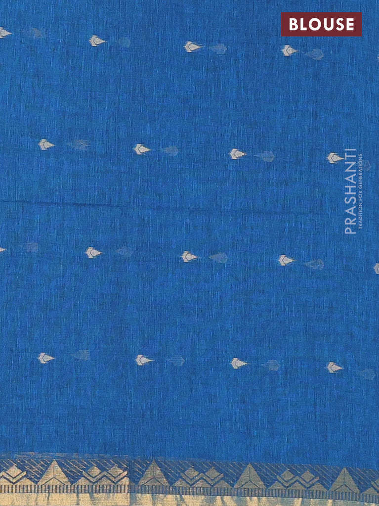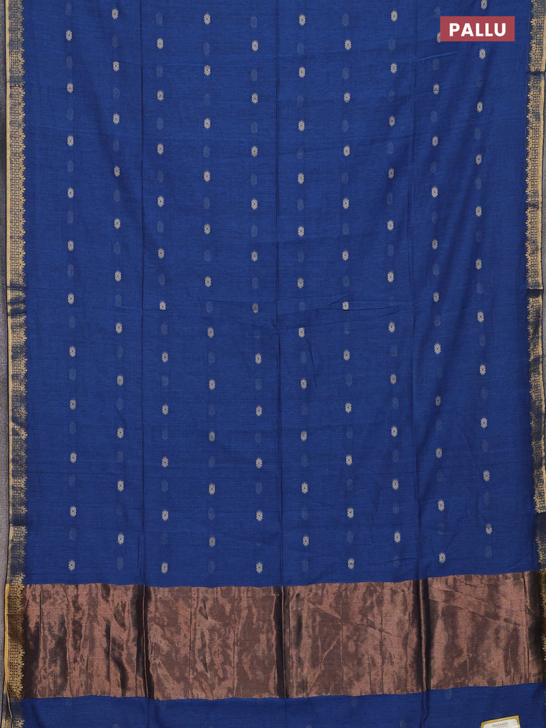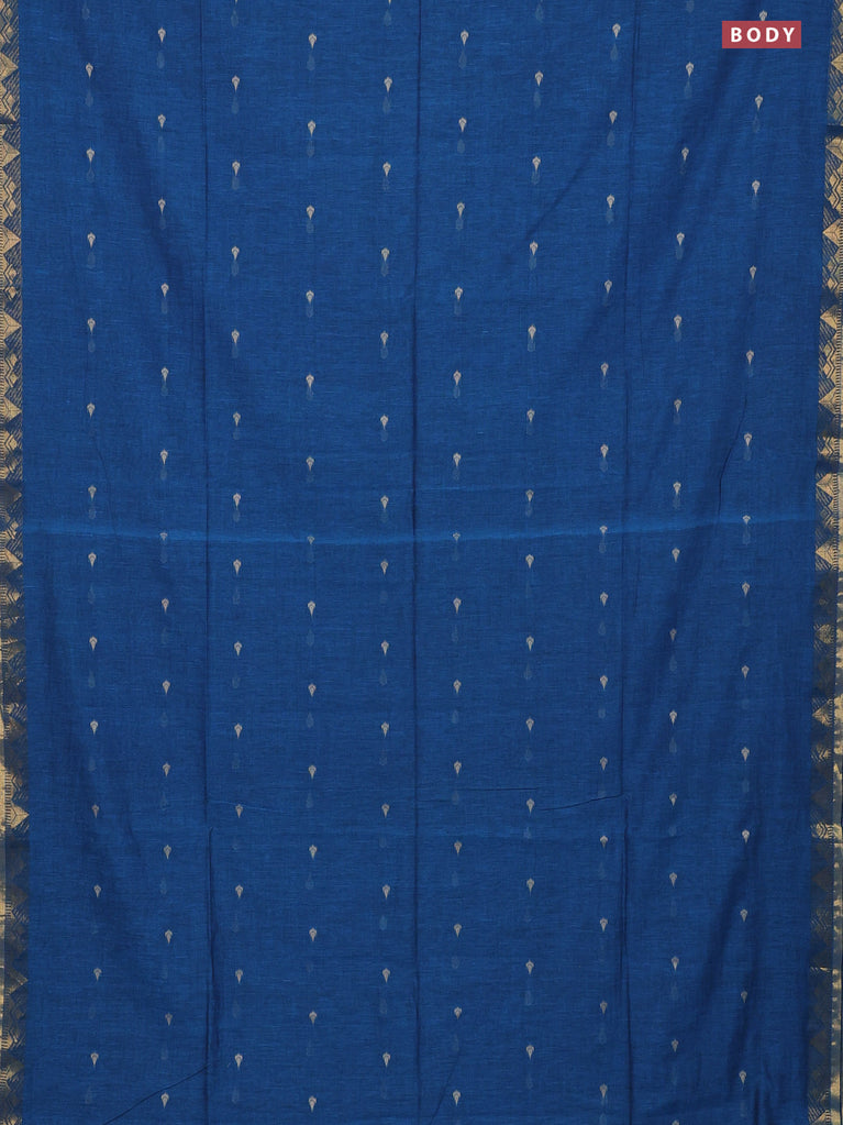 Bengal soft cotton saree cs blue with thread woven buttas and zari woven border