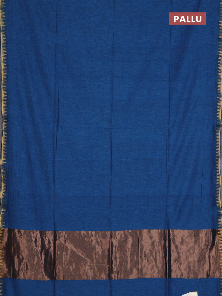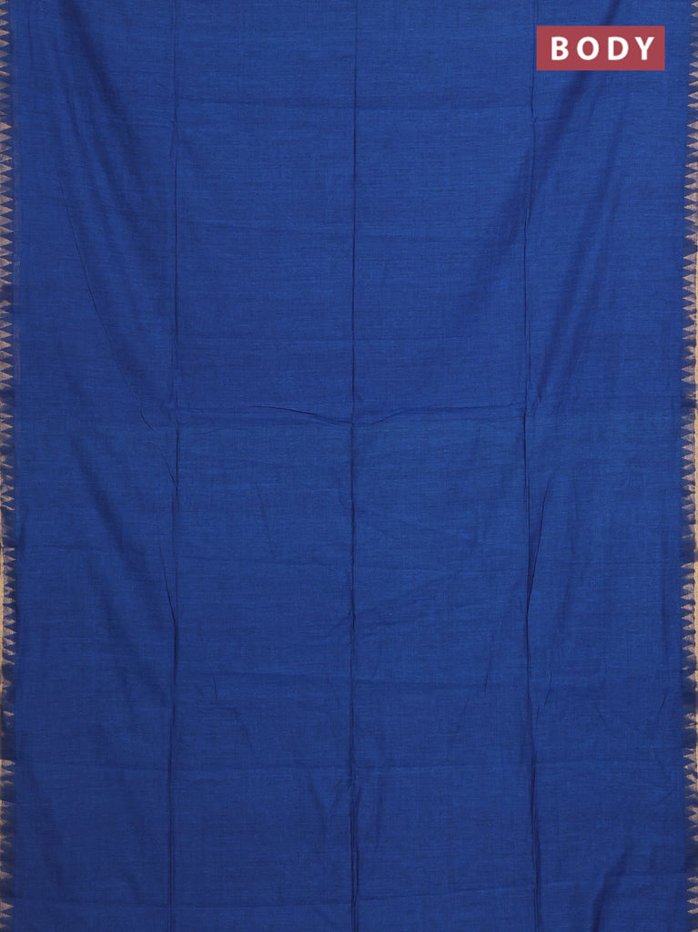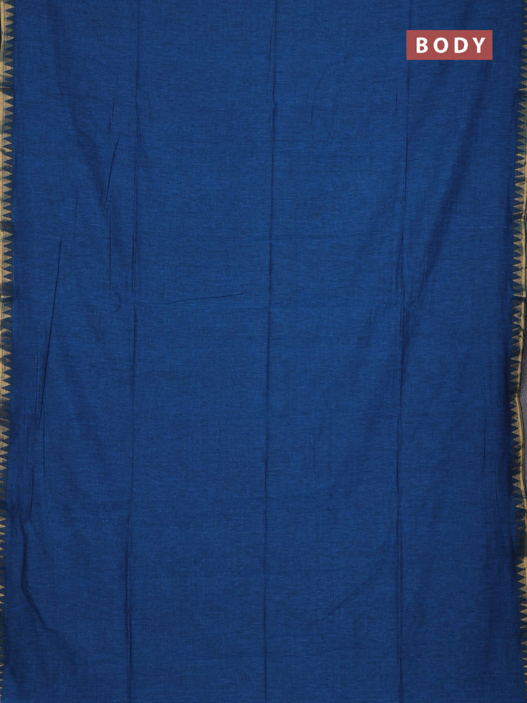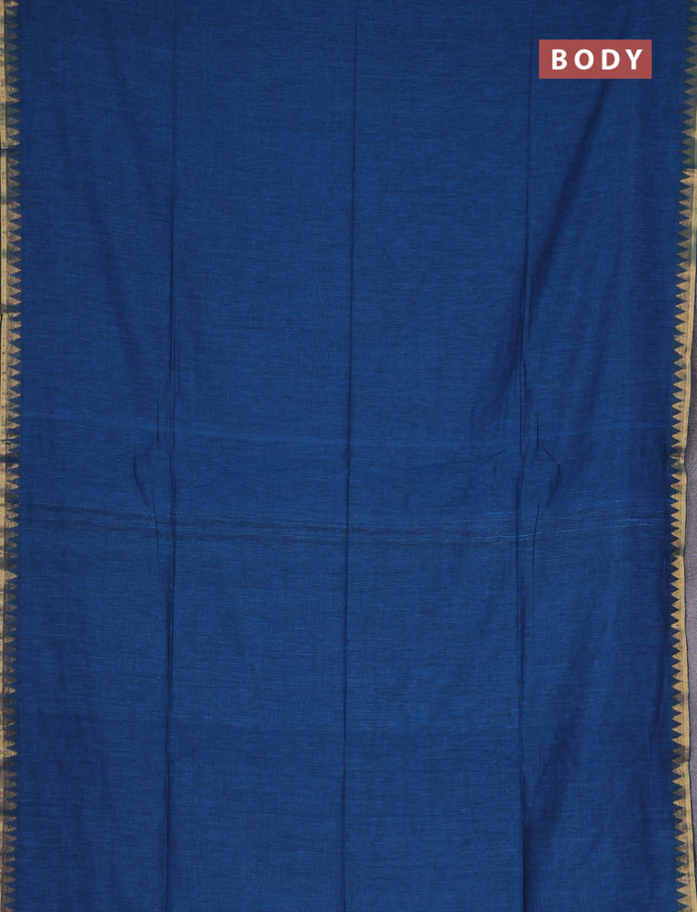 Bengal soft cotton saree cs blue with plain body and temple design zari woven border