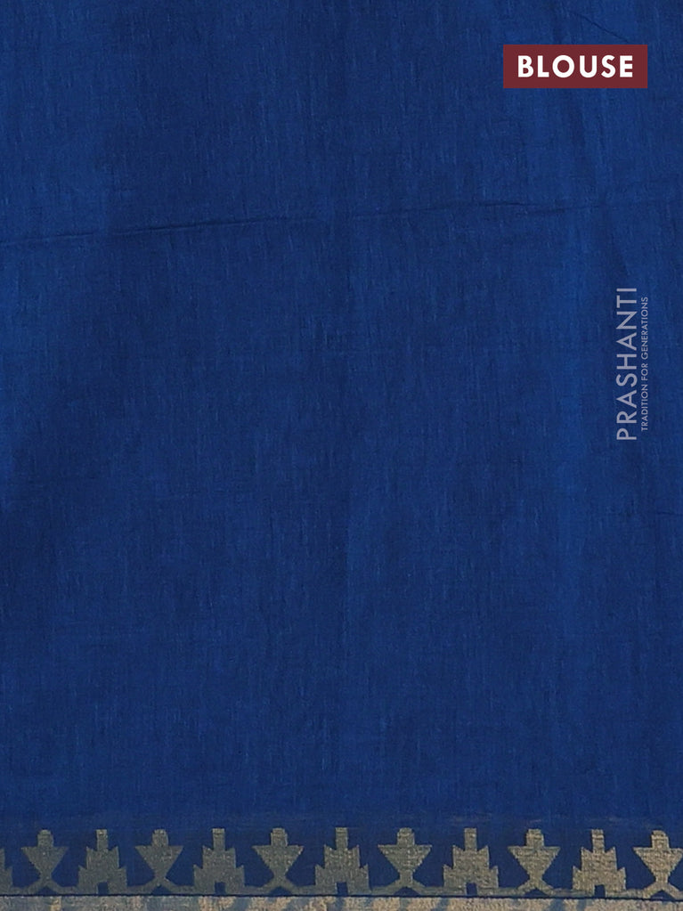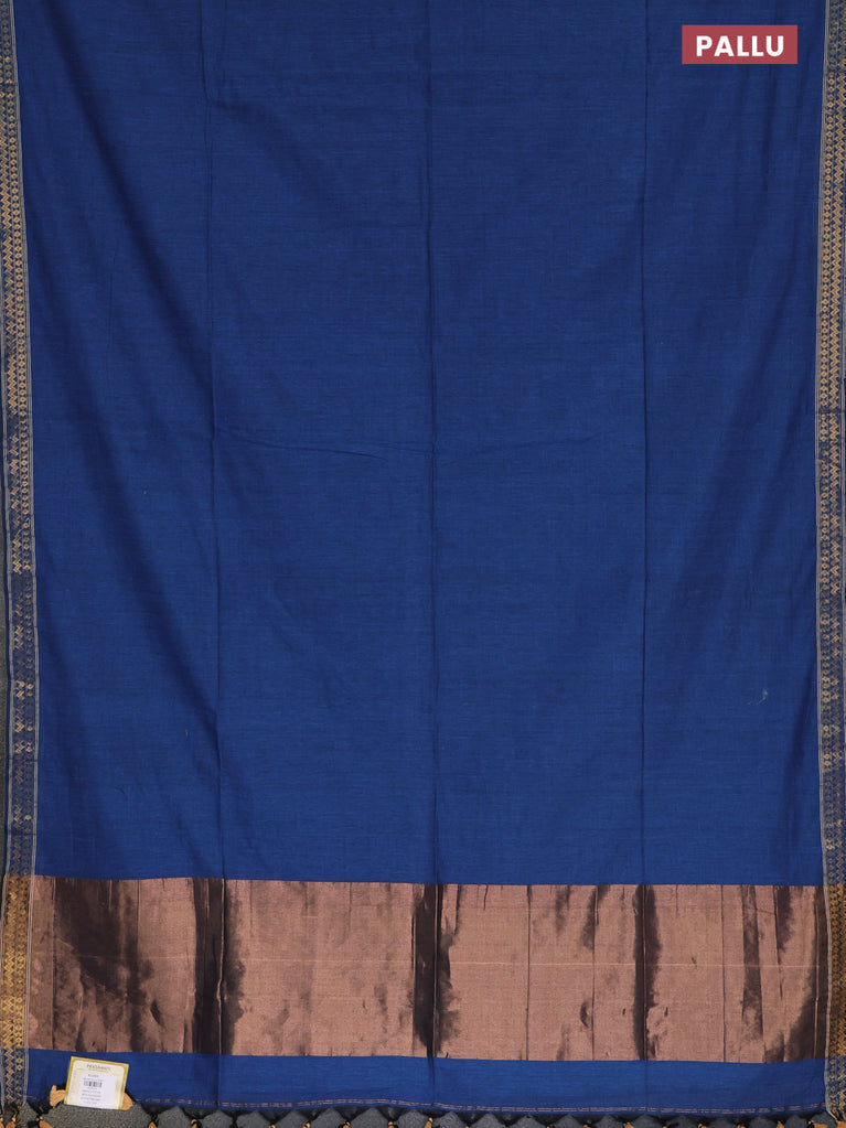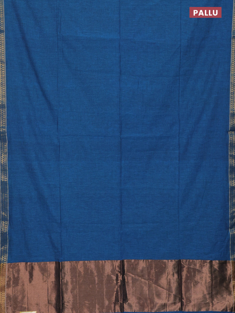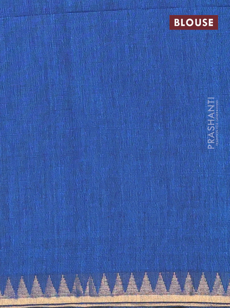 Bengal soft cotton saree cs blue with plain body and temple design zari woven border