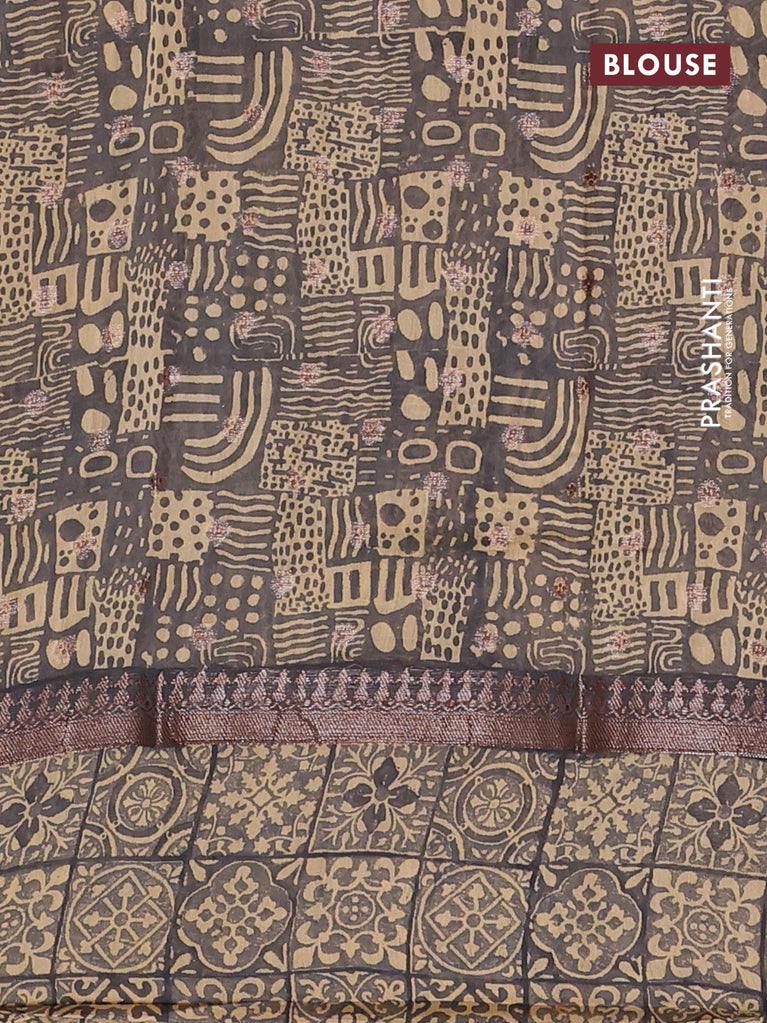 Chanderi silk cotton saree brown and beige with allover prints & mirror work and printed border