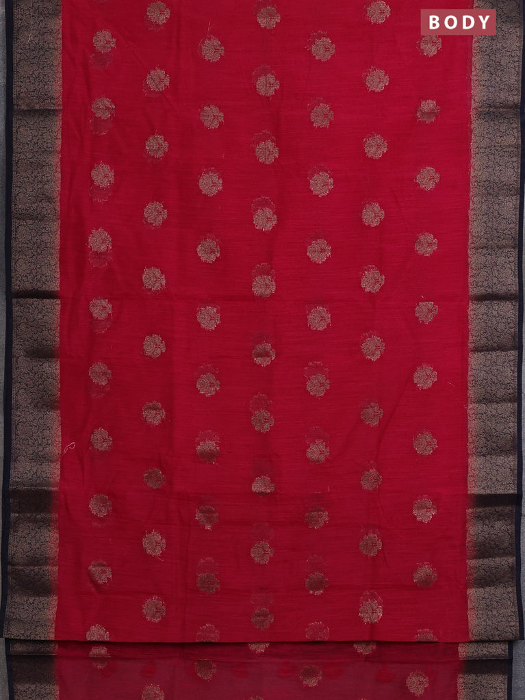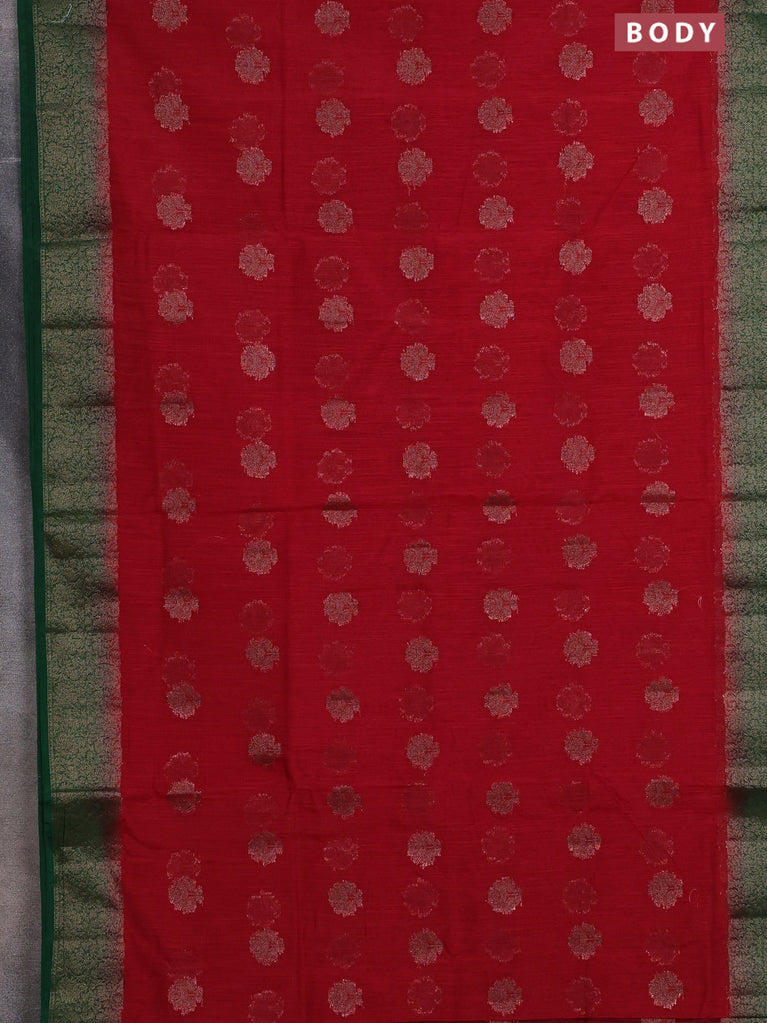 Banarasi semi matka saree red and green with thread & zari woven buttas and banarasi style border