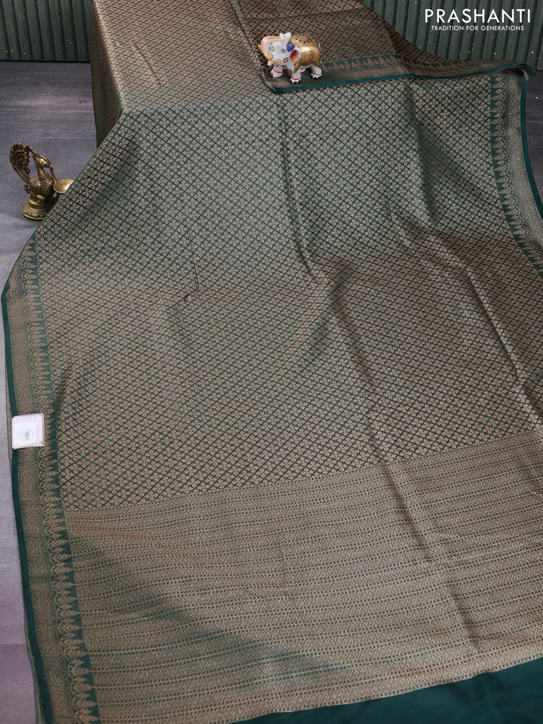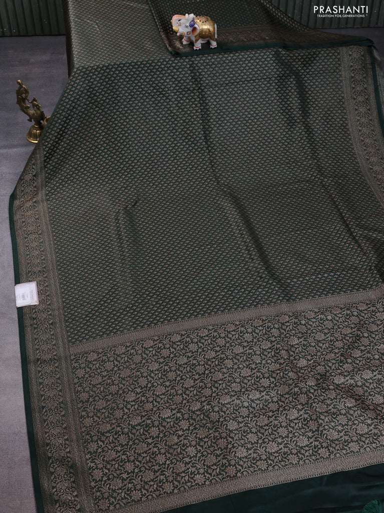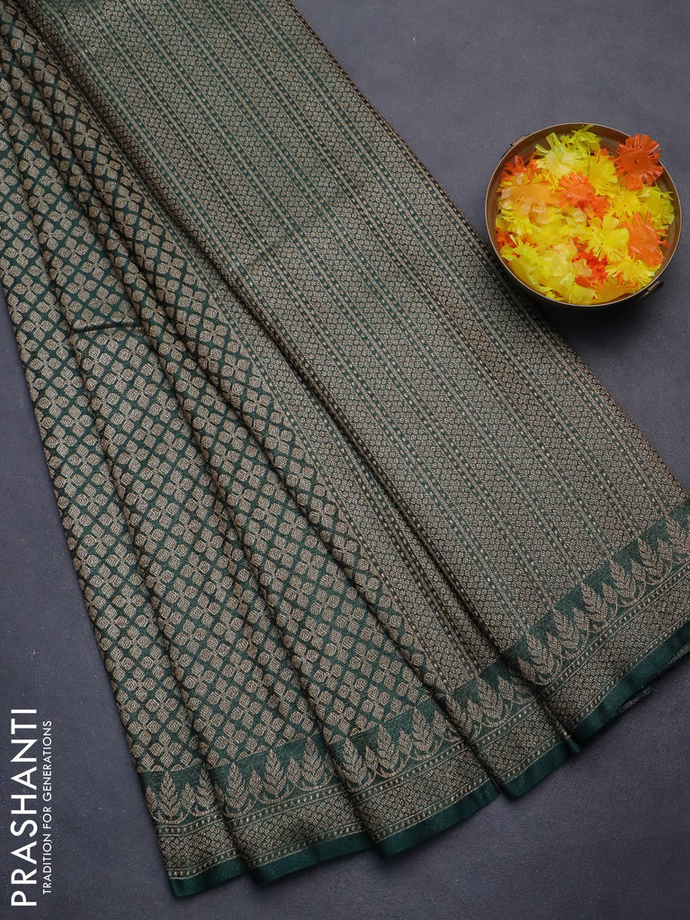 Banarasi semi silk saree green with allover thread & zari weaves and woven border