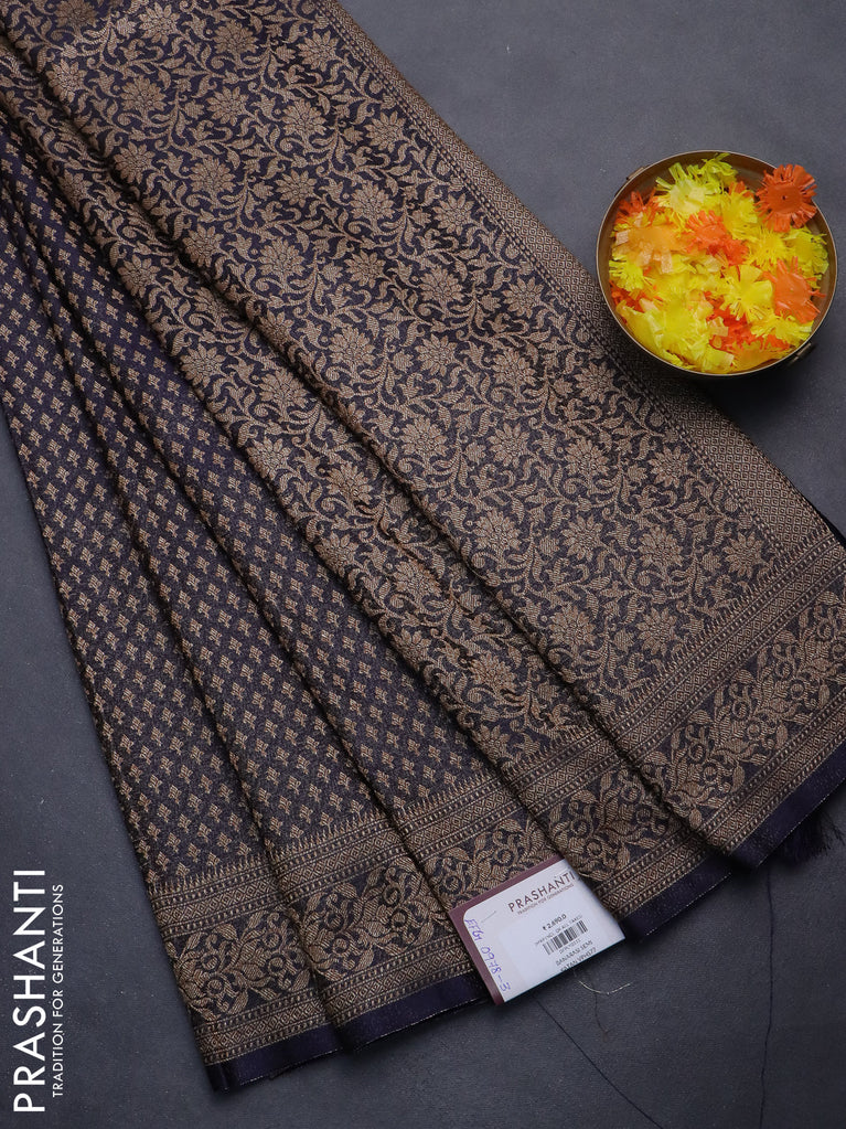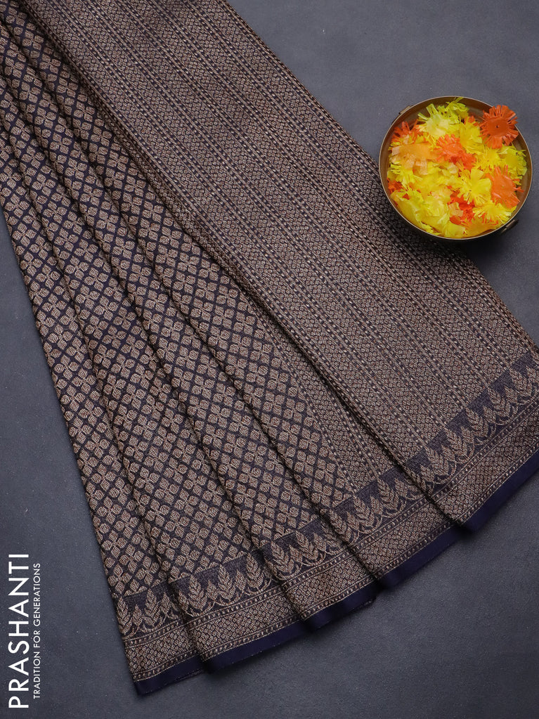 Banarasi semi silk saree navy blue with allover thread & zari weaves and woven border