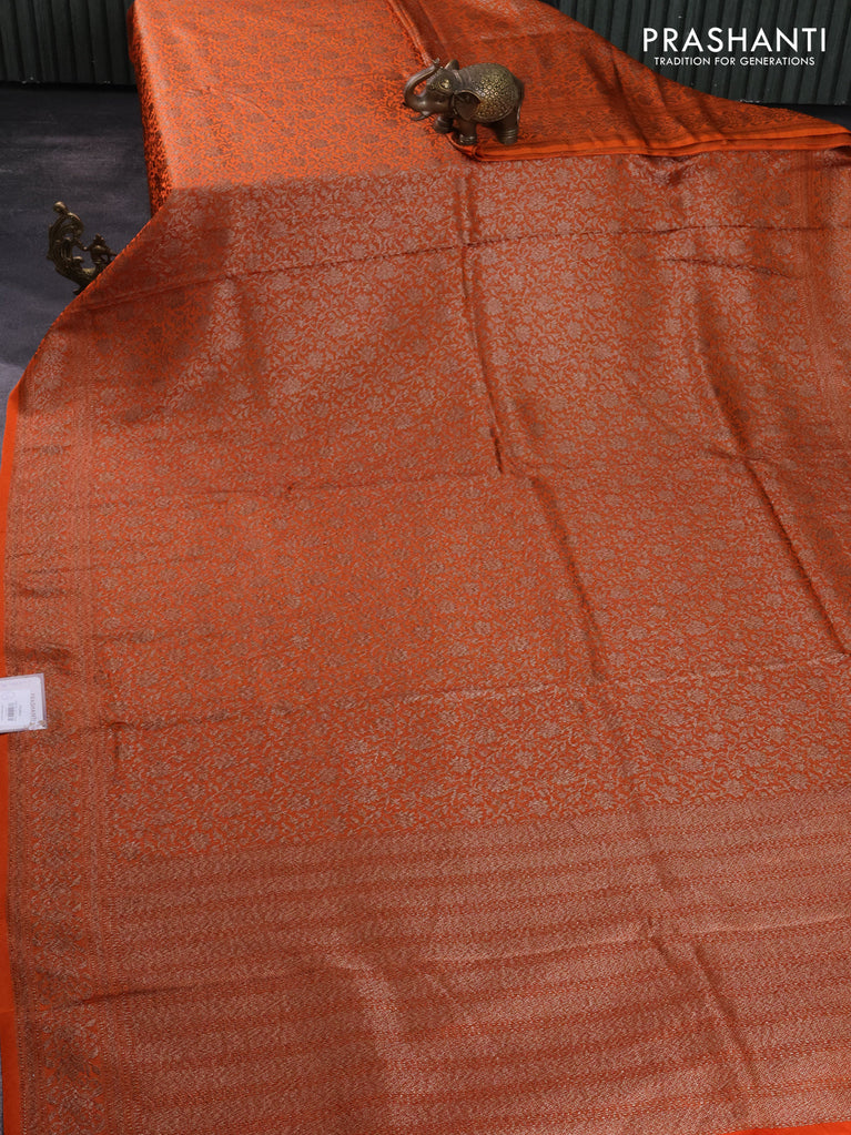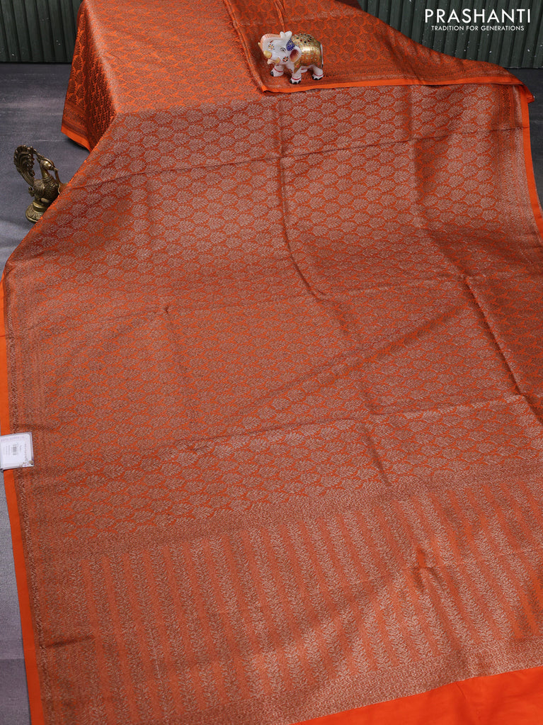 Banarasi semi silk saree orange with allover thread & zari weaves and woven border