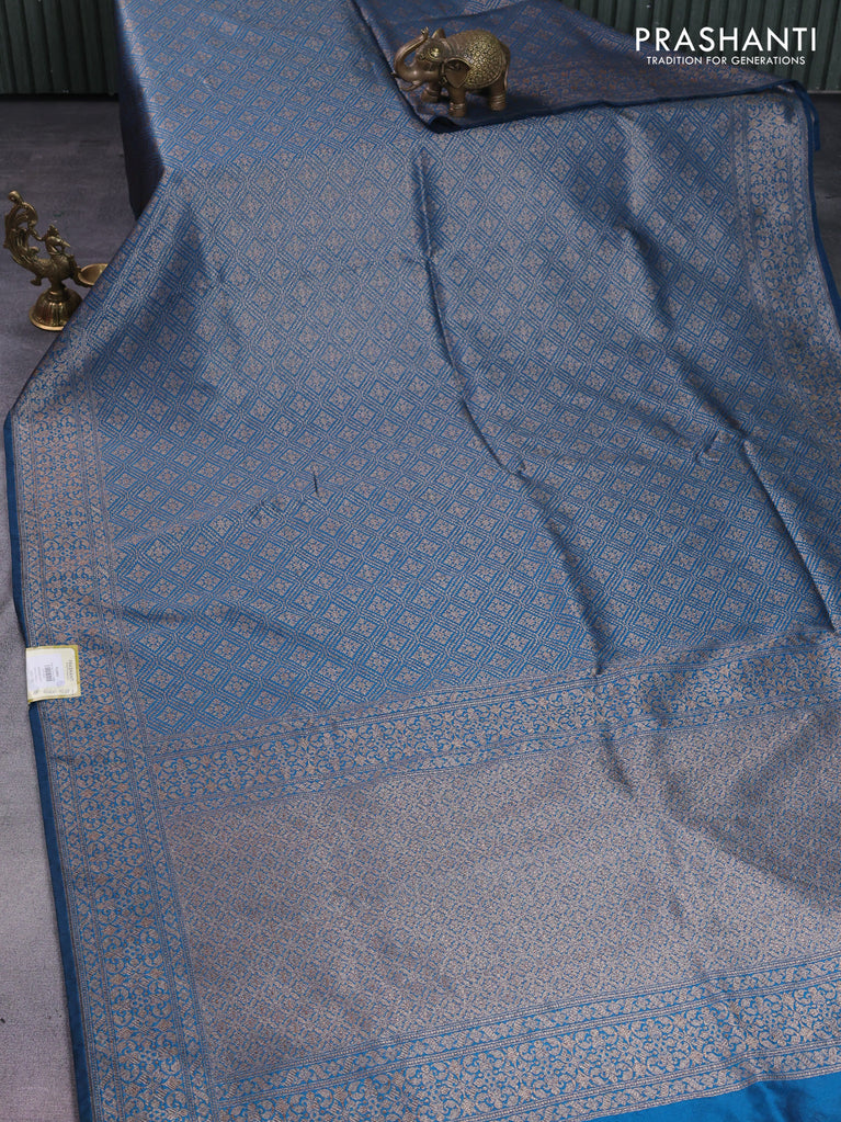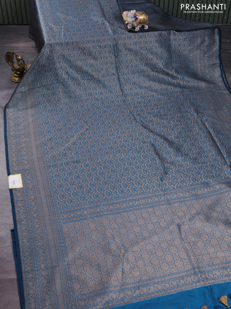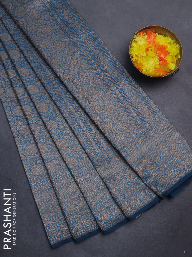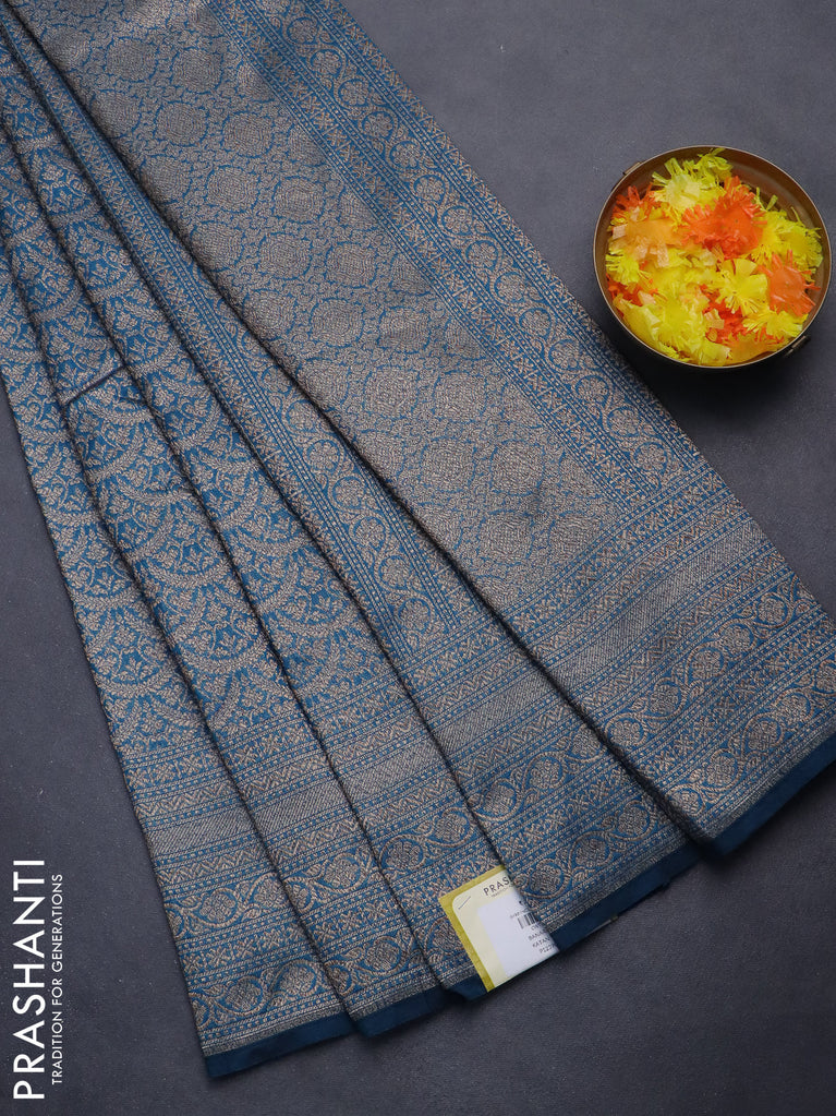 Banarasi semi silk saree peacock blue with allover thread & zari weaves and woven border