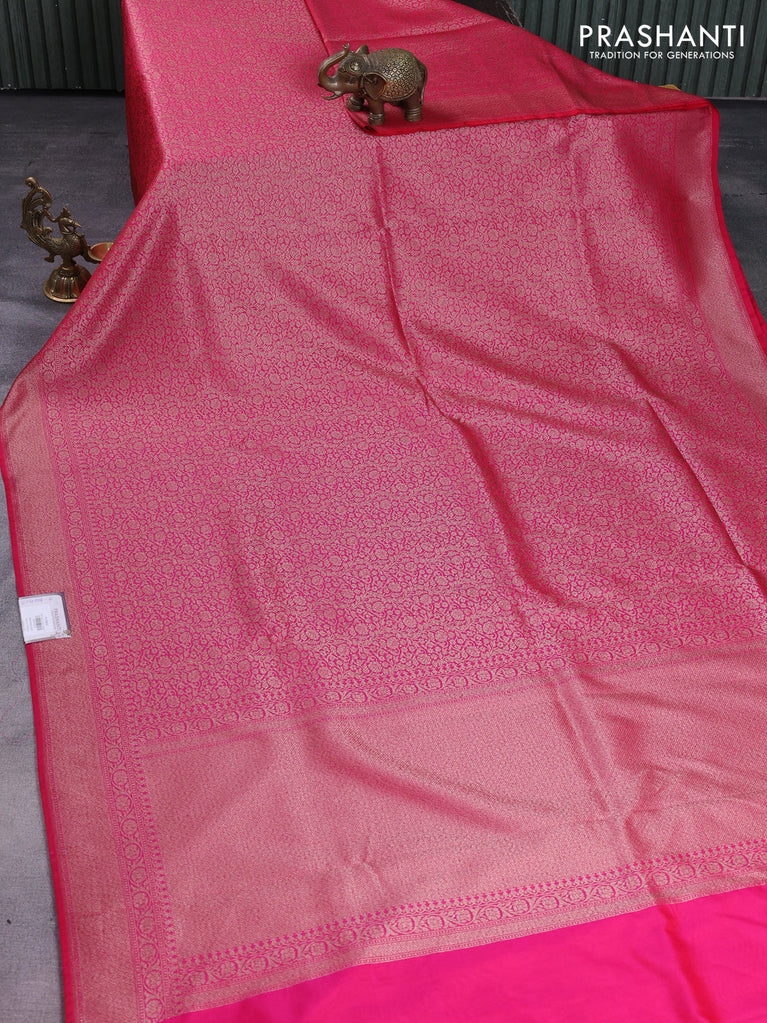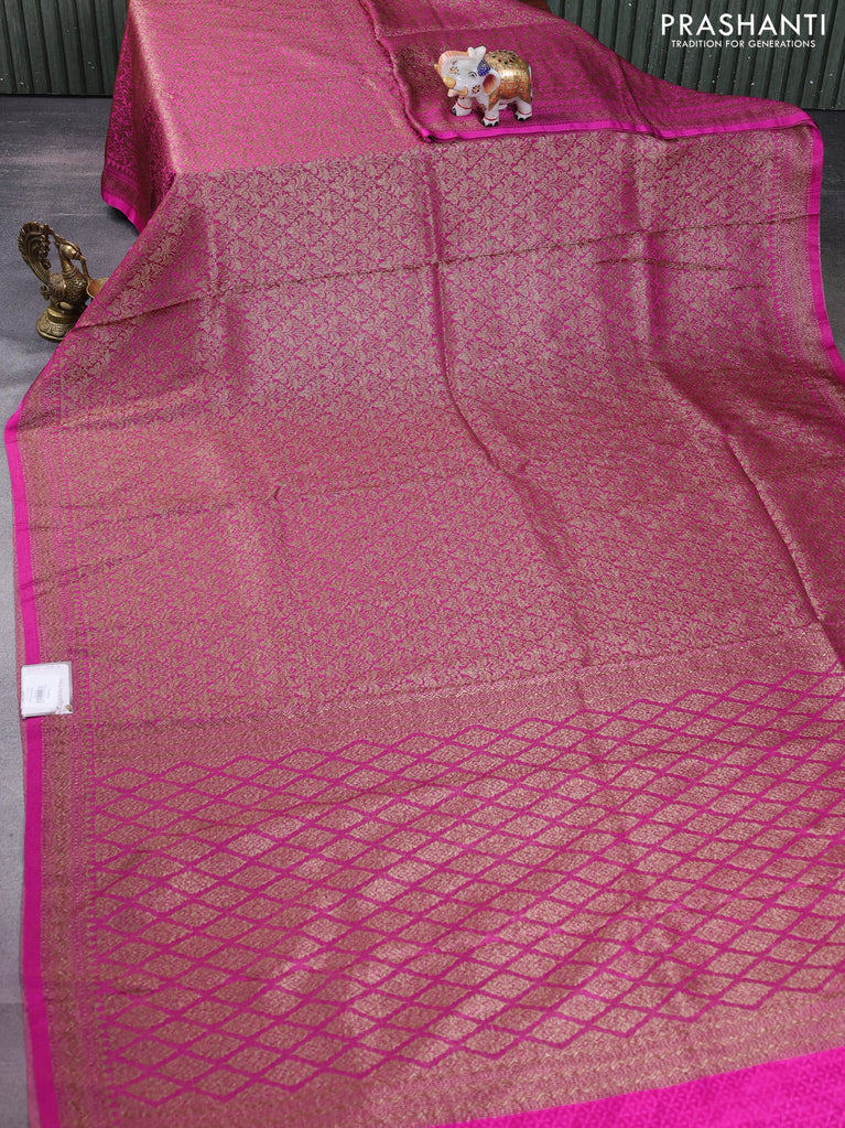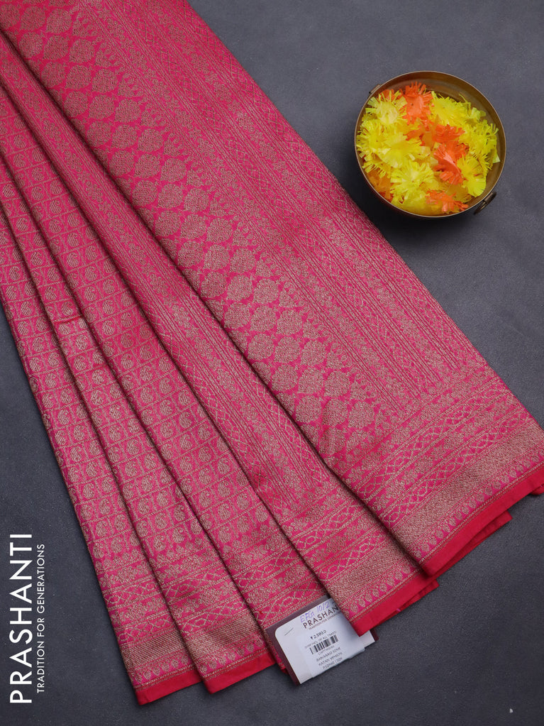 Banarasi semi silk saree pink and violet with allover thread & zari weaves and woven border